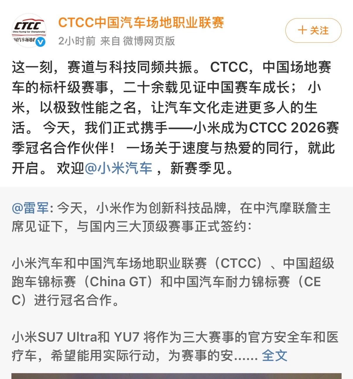 一次性冠名CTCC、China GT、CEC三大顶级汽车赛事,小米这次是真的把热