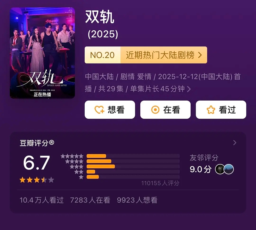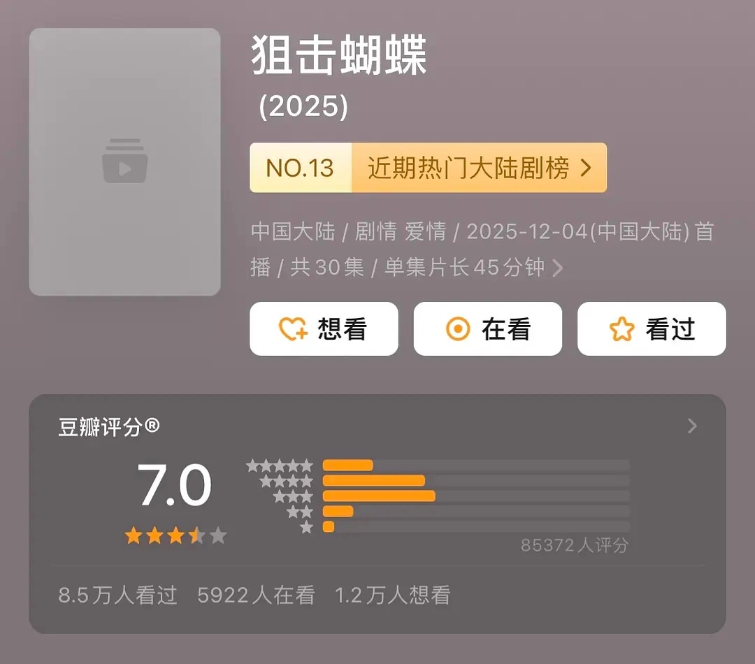 才7万人打分就敢把播放量造假到破亿,真是脸皮厚的能当坦克履带了。逐玉豆瓣6.8