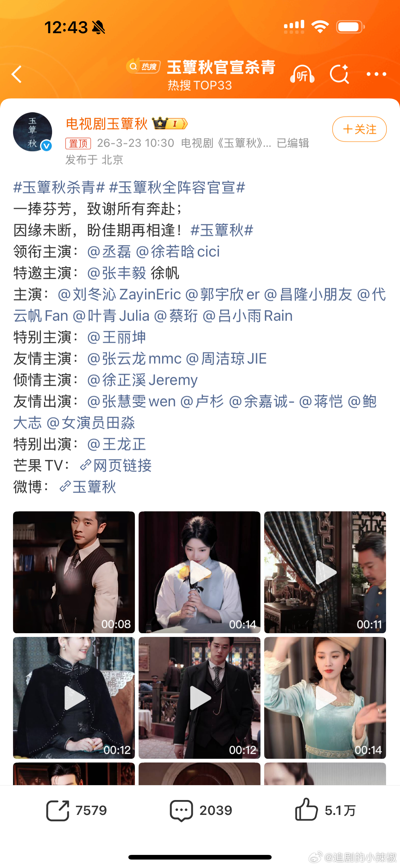 玉簟秋全阵容官宣家人们!2026年必看民国剧清单里必须得有这部!🆘刚看完成何,转头就要撞进了丞磊这件军阀制服里!和徐若晗搭档的这部《玉簟秋》真的是颜狗盛宴,剧情好狗血上头,第一次在内🐟看到情感拉扯这么全面的剧