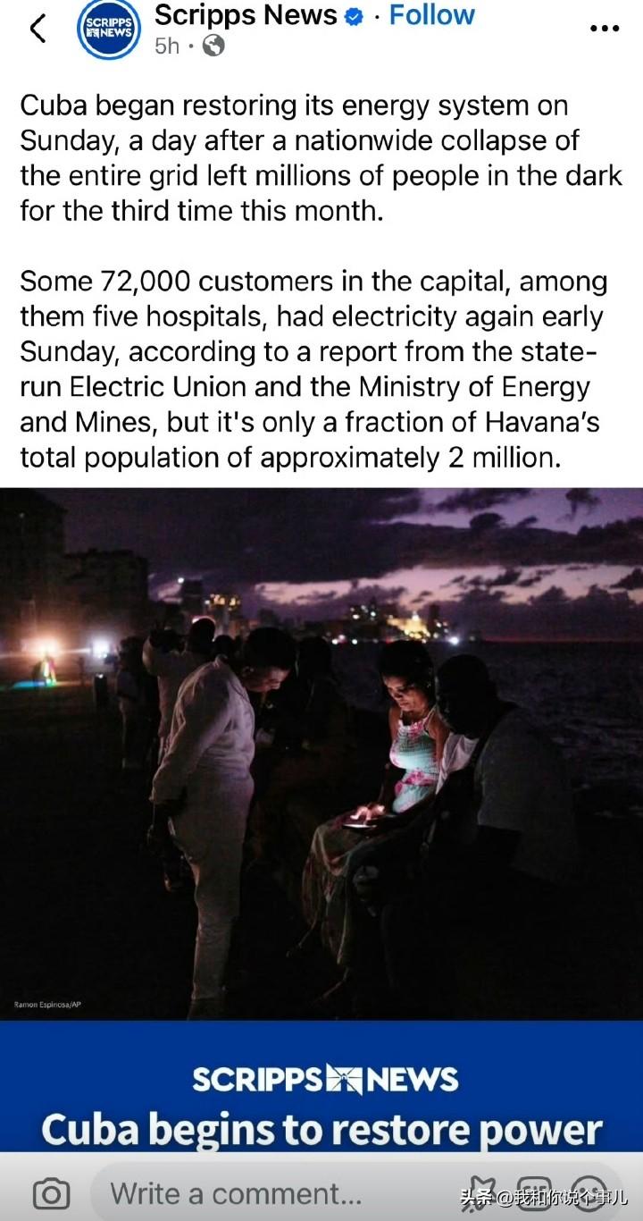 昨天古巴遭遇3月以来第三次全国范围大停电,上周已经停了两次。古巴现在经济这么差,当局把一切归咎于“美国封锁”,美国是唯一罪魁祸首,但独立经济学家分析,美国制裁只是雪上加霜因素,其根本原因是古巴实行高度中央计划的社会经济,国有化一切生产资料、价格管制、缺乏私人激励, 导致效率极低,管理不善和贪腐、官僚主义严重; 再加上人口外流(医生、年轻人大量移民),劳动力短缺,结果就是黑市和通胀,民众实际生活水平远低于拉美平均水平,停电、排队买面包、医院缺电,已成日常。 很多观察者认为,只有彻底改革(开放市场、吸引投资、反腐)才能走出困境。目前已有零星开放信号(如允许侨民投资),但前景仍不确定。 电网瘫痪的根源远不止燃料短缺,苏联时期投产的发电机组超期服役数十年,核心零部件因长期封锁与资金匮乏无法更换,运维体系形同虚设,即便有油也难以稳定供电,这正是体制僵化结出的苦果。国有电力系统人浮于事,层层审批拖慢抢修进度,贪腐蛀空有限预算,民众只能在反复停电中忍受酷暑与黑暗,医院重症设备频频停摆,本就紧缺的药品在高温下变质,人道主义危机持续加剧。国营商店货架常年空空,面粉、豆类、食用油等基础物资需彻夜排队抢购,黑市价格飞涨,普通民众的工资在恶性通胀面前一文不值,生活水准在拉美国家中稳居末流。 人才流失已成不可逆的灾难,大批医生、工程师、技术工人与青壮年为求生存远赴美国、西班牙等国,国内劳动力缺口持续扩大,农业、工业、医疗领域无人可用,曾经引以为傲的全民医疗与教育体系摇摇欲坠。官僚主义层层设卡,私人创业处处受限,价格管制扭曲市场供需,勤劳与收益完全脱钩,没人愿意用心生产,物资匮乏陷入恶性循环。美国封锁固然加剧了困境,但绝非全部理由,自我封闭的经济模式、低效的资源调配、根深蒂固的贪腐与官僚作风,才是拖垮古巴的核心病灶。 近期允许侨民回国投资、放宽民营经济准入的零星改革,更像是被逼至绝境的被动妥协,而非主动革新。既得利益集团不愿放弃权力与资源,改革力度畏首畏尾,开放范围小心翼翼,外资与侨资仍面临诸多政策壁垒,市场活力难以真正释放。若不能彻底打破计划经济桎梏,全面开放市场、吸引海外投资、重拳整治贪腐、重构激励机制,古巴只会在停电、匮乏、流亡的循环中越陷越深。短期的政策松绑无法根治系统性顽疾,这个加勒比岛国的未来,依旧被体制枷锁与外部封锁双重围困,前路迷雾重重,看不到真正的转机。