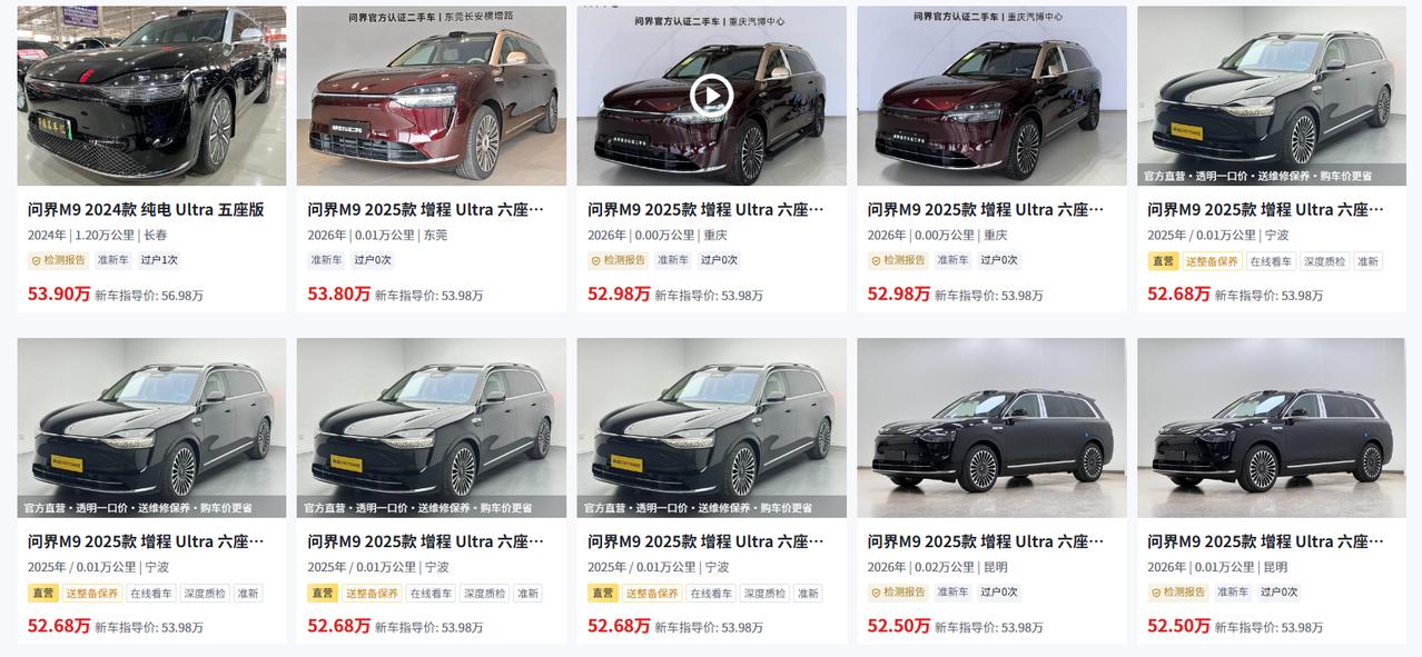 二手问界M9最大的坑:早期版和改款版根本不是一台车。 问界M9是华为全栈科技集大成的旗舰,鸿蒙座舱、ADS智驾和途灵底盘是它的三大核心卖点。但二手市场里——2024年初的早期批次和2024年下半年之后的改款版本,体验差距大到像两代车。买错了,不是“捡漏”,是“踩雷”。 先说早期批次为什么慎重入手。2024款首批车型虽然标配了激光雷达和ADS 2.0,但智驾芯片算力有限,城区NCA的流畅度和博弈能力明显不如后期版本;底盘虽然有空悬,但CDC调校偏软,大车感强,过起伏路面时车身晃动较多。最要命的是早期车机偶发卡顿、二排投影幕布故障率偏高,二手价虽已跌至35-40万,但后续维保成本不可忽视。 改款后的M9就完全不一样了。2024年下半年之后生产的车型,智驾升级到ADS 3.0,192线激光雷达配合4D毫米波雷达,城区智驾真正达到“老司机”水准;途灵底盘经过重新标定,全系标配闭式空气悬架+CDC,滤震和支撑性都上了两个台阶。2025款更是把投影幕布换成了同级罕见的32英寸车载智慧屏,后排体验直接拉满。 问界M9的通病是低速过颠簸路面时,后排偶有内饰细微异响,部分车主反馈在B柱或第三排位置。买车前一定要坐后排走烂路实测,感受能否接受。纯电版百公里能耗约18-20度电,家用桩每公里不到1毛钱;增程版纯电行驶成本也极低,综合用车成本比同级燃油车省一半以上。 所以我的建议是,优先选2024年下半年之后生产的改款车型,首选Ultra增程版或纯电版(带ADS 3.0+后排智慧屏),二手价45-52万。早期批次即便价格再低,也不建议入手——智驾体验和整车稳定性差距明显,残值同样不占优势。【来自懂车帝车友圈】