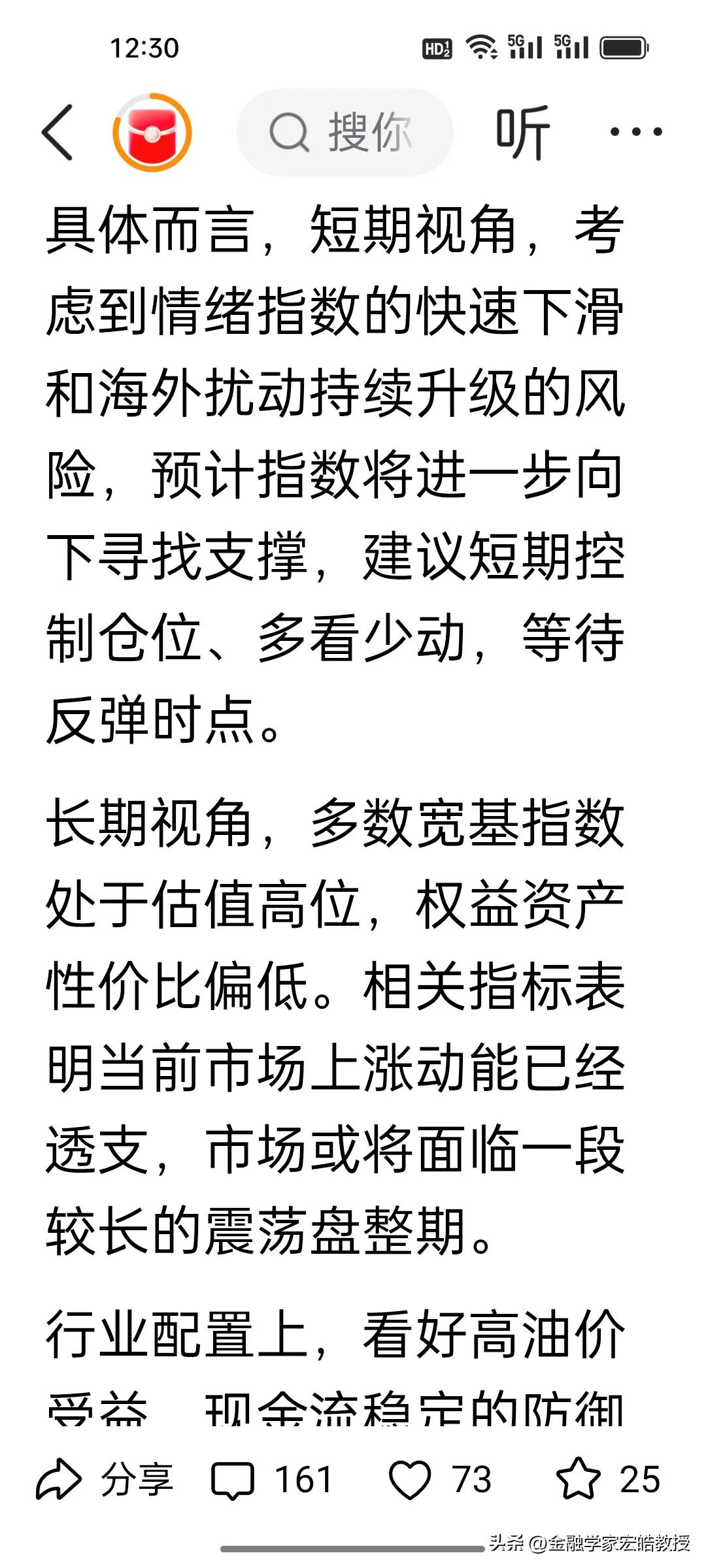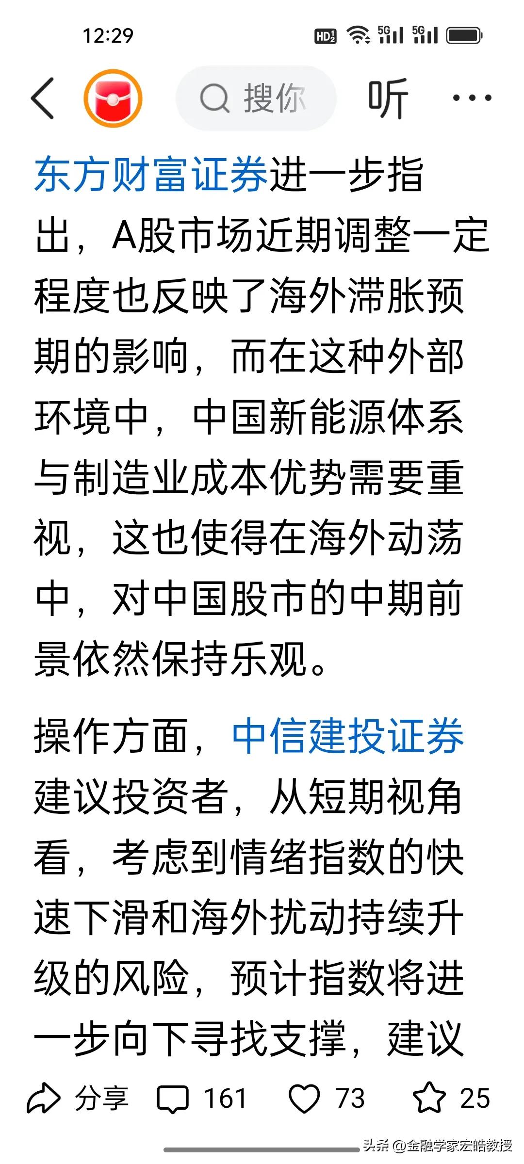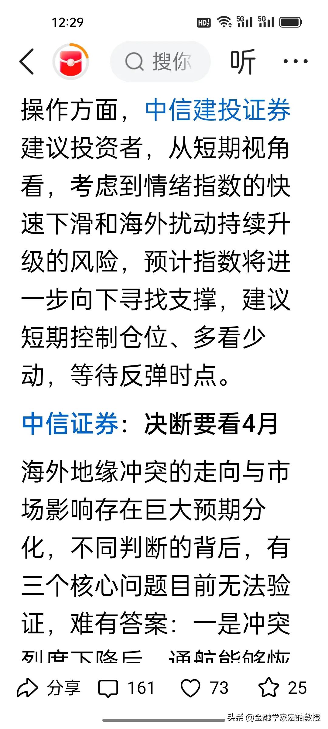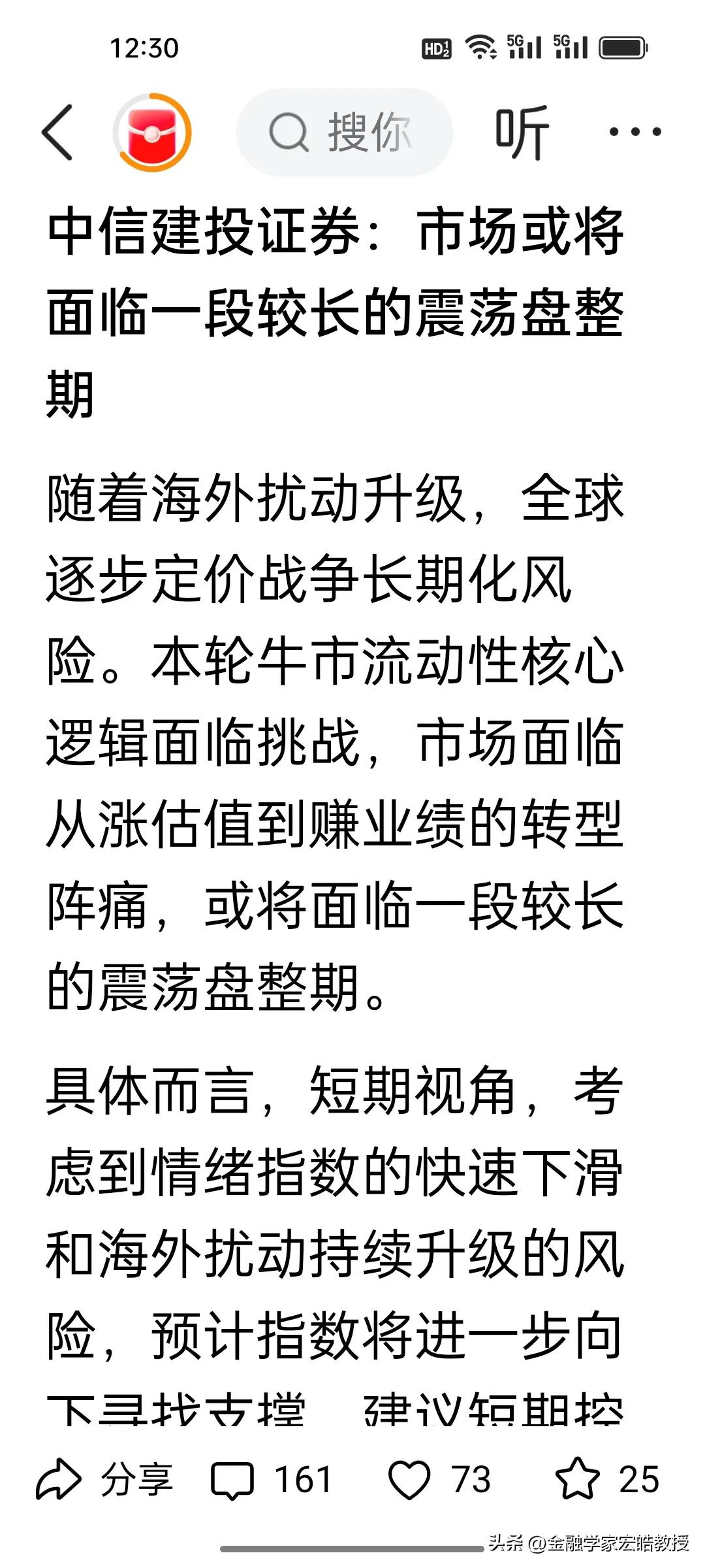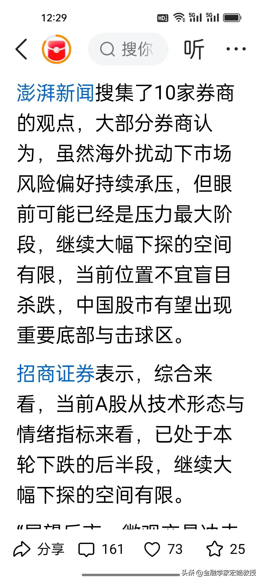 今天市场跌麻了不要怕,当前A股磨底信号明确!两大券商观点共振,别慌割肉! 刚刚,根据《澎湃新闻》报道的十大券商看后市,当前A股持续调整,我认为招商证券与中信建投观点如出一辙:市场已处调整后半段,继续大跌空间有限,但短期仍将震荡寻底、进入磨底期,不宜盲目抄底也别恐慌杀跌。 外部扰动压制情绪,美伊战争走向何方目前不得而知,A股市场正从估值驱动转向四月份业绩验证,阵痛难免。操作上控仓观望、多看少动,耐心等待企稳信号。 底部磨盘正是布局窗口期,熬过震荡,不要灰心,反弹就在前方!