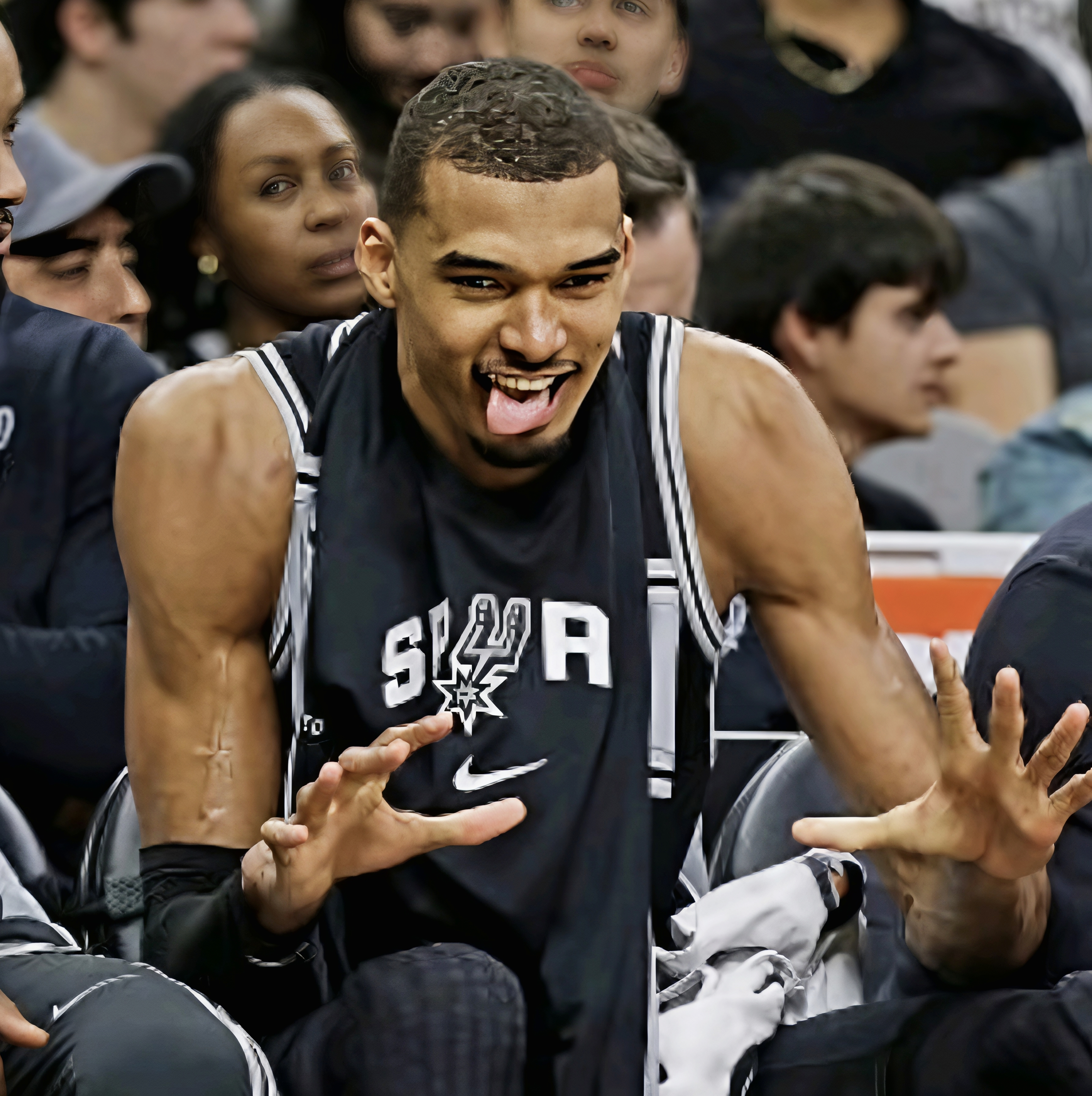 衣服穿人vs人穿衣服外星猛犬!昨天文班亚马在替补席搞怪被抓到了