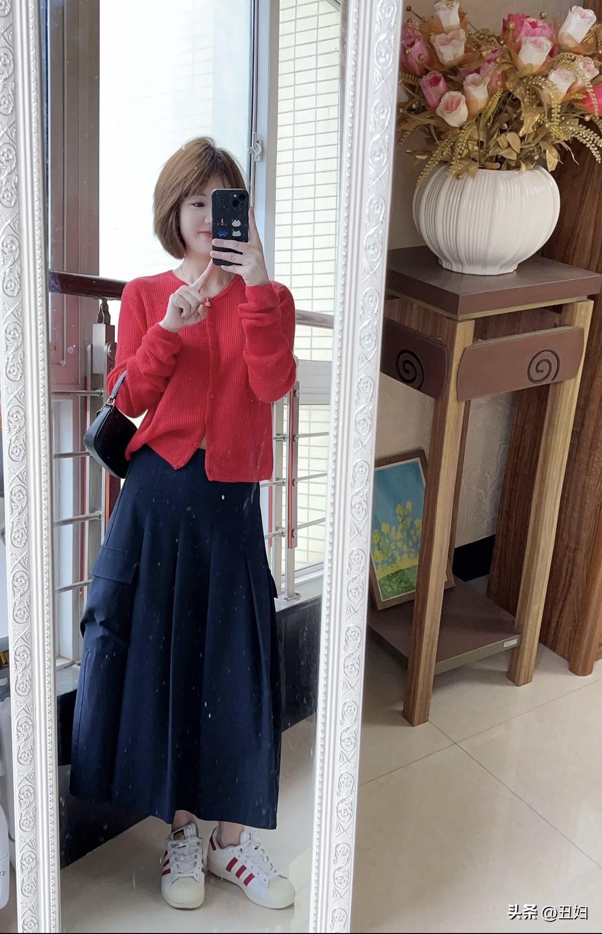 分享时尚穿搭心得复古红毛衣搭配海军风半身裙,简约优雅,尽显时尚气息!🌟👗👠