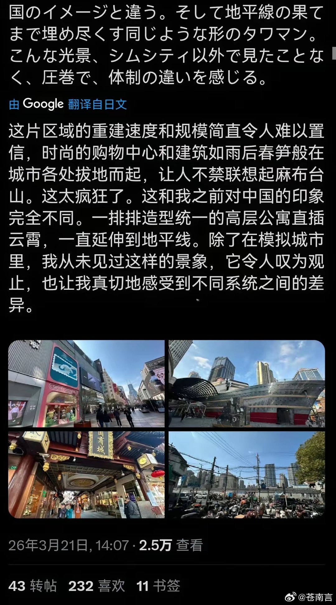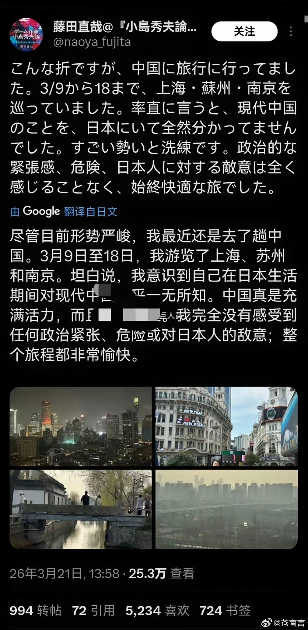 日本教授中国旅游后感叹日本变态他还夸上海的商场和高楼像模拟城市,连苏州园林里都能