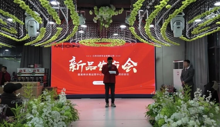 2026美缔永亳运营中心春季新品发布会暨2025优秀经销商表彰会隆重举行,汉邦车业集团有限公司相关领导、行业嘉宾与来自河南永城、安徽亳州两地的近200名美缔电动车经销商齐聚一堂,共赏美缔新品风采,共话合作共赢未来,共绘汉邦车业在中原区域的发展蓝图。本次发布会现场订货量达近2000台,新品惊艳亮相,表彰激励人心,彰显了汉邦车业旗下美缔电动三轮车强大的品牌实力与市场号召力。