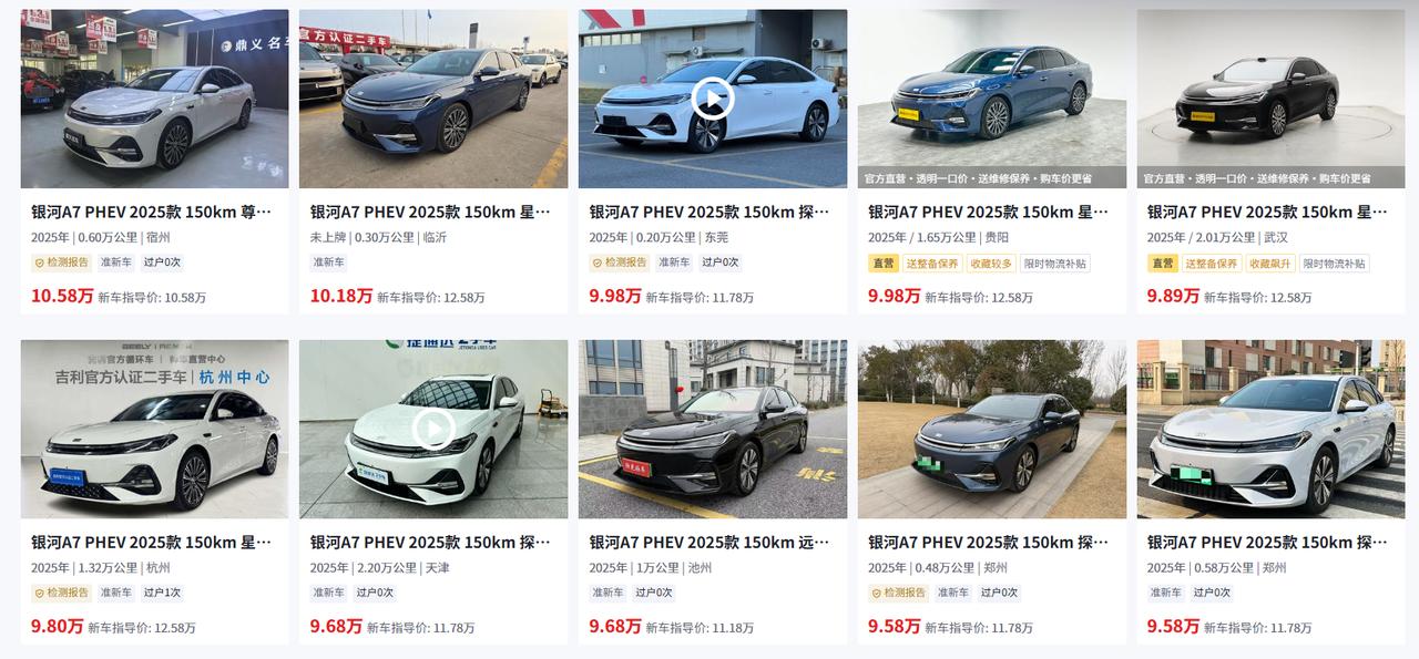 “我看二手平台上那辆吉利银河A7才开了几千公里,价格比新车便宜两三万,是不是捡漏的好机会?”说实话,这个问题真不能一句话回答。今天咱们就掰开揉碎聊聊——二手银河A7到底值不值得入手? 一、但好消息是,价格真香,水也不浅。 比如2025款150km探索版,新车指导价10.98万,二手平台0.6万公里的准新车报价比新车便宜2-3万。70km入门版更夸张,5.98万就能拿下。同一配置的准新车,不同地区差价也能到1万左右。 保值率方面,银河A7第一年约74%-77%,在同级插混里算不错。但要注意,部分早期批次(2025年10月前)存在车机卡顿、底盘异响等小毛病反馈,入手前得确认生产月份。 二、再聊聊版本差异。 银河A7的核心分水岭是纯电续航: 150km探索版/星舰版:二手市场的“性价比之王”。配宁德时代电池、支持快充(18分钟补能80%)、馈电油耗2.67L。高配还有Flyme Auto车机、L2辅助驾驶、座椅通风加热。二手价10-12万,适合有家充条件的家庭用户。 70km豪享版/探索版:入门级,二手低至6-8万。但纯电续航实际只有50多公里,没快充,适合当油车开、充电不便的用户。注意低配版智驾硬件缩水,没有高速NOA。 150km尊享版:入门长续航版,少了高阶智驾,二手9-10万,预算紧张但想要长续航的可以考虑。 三、选购建议 优先150km探索版。长续航+高阶智驾+快充,这才是银河A7的“完全体”。多花1-2万,换来的是每天少充电、高速更省心的体验。 避开网约车退役车。A7因经济性受网约车青睐,要警惕内饰磨损与里程不符的车——电池循环次数高、机械部件疲劳,后续维修成本可能远超省下的钱。 查清生产月份和质保。优先选2025年8月以后上牌的车,车机系统更新、Bug少。三电终身质保需要确认能否随车过户、是否有全程4S保养记录。【来自懂车帝车友圈】