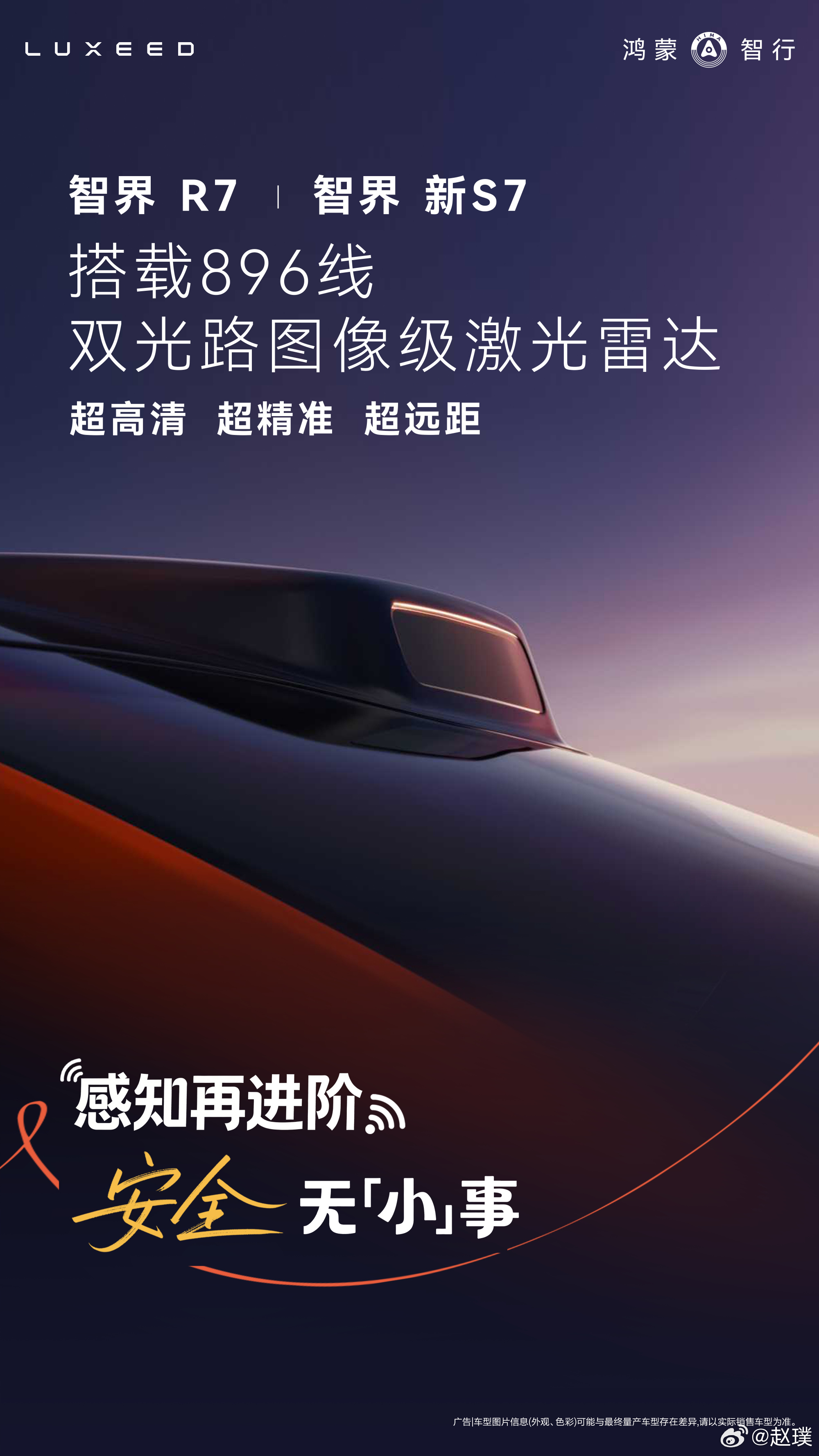 尚界Z7、尚界Z7T、问界M6、问界M8、智界R7、智界新S7、享界S9、享界S9T都会搭载全球量产最高896线的新一代双光路图像级激光雷达。