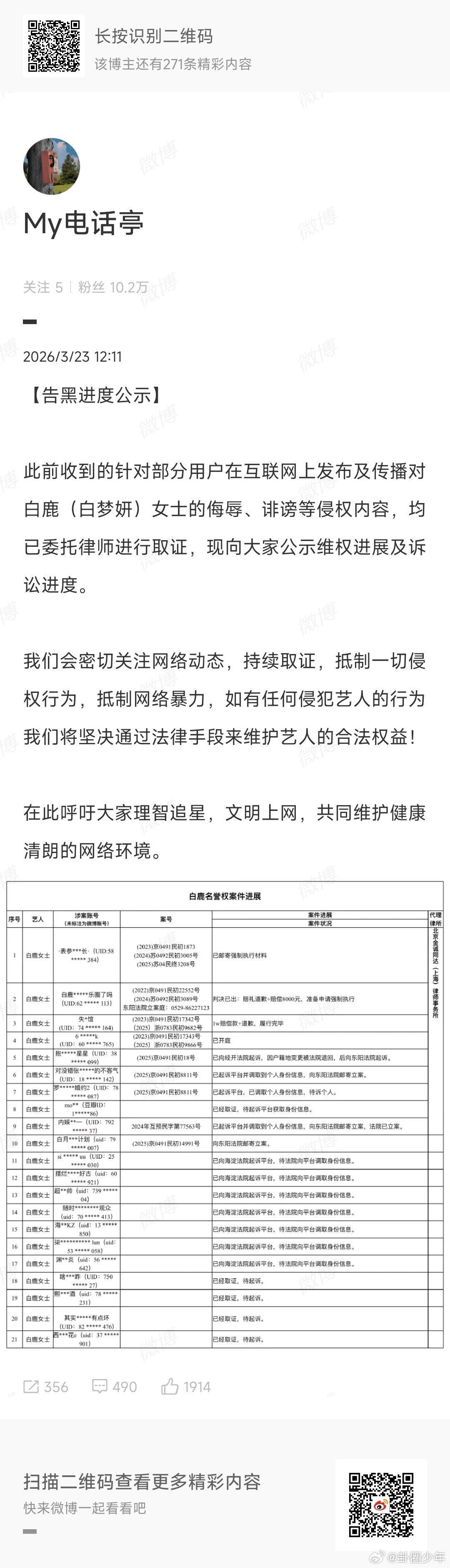 白鹿方告黑公示名单白鹿方告黑公示 白鹿方告黑公示名单,侵权者绝不姑息。造谣抹黑必有代价,法律维权从不止步