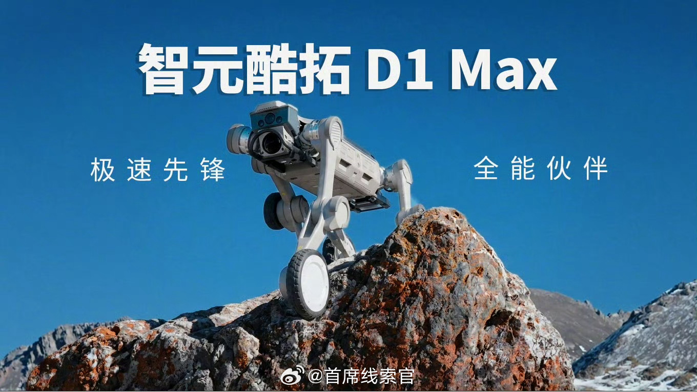 智元酷拓 D1 MAX 拥有 30 公里续航,支持 IP67 防护、30 公斤载重、8 米 / 秒速度,30 公里极限地形续航穿越,可应用于安防、巡检、应急,消防,物流等领域。