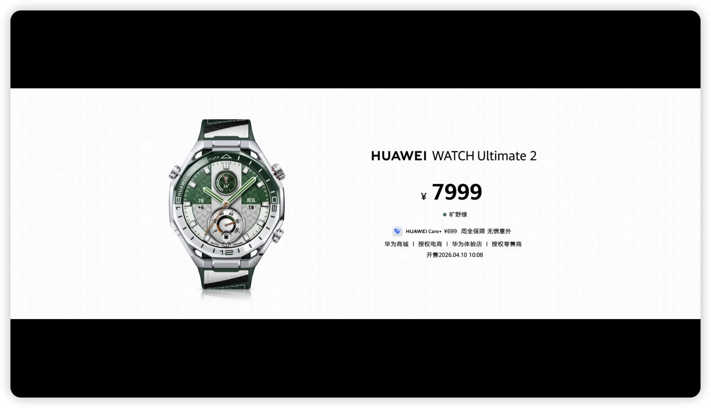 华为 WATCH Ultimate 2 旷野绿 配色,¥7999。可以说是很尊了 …… 华为发布会