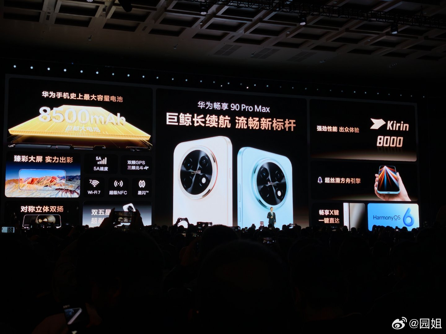 华为畅享 90 Pro Max 采用 8500mAh 巨鲸电池,支持wifi7。