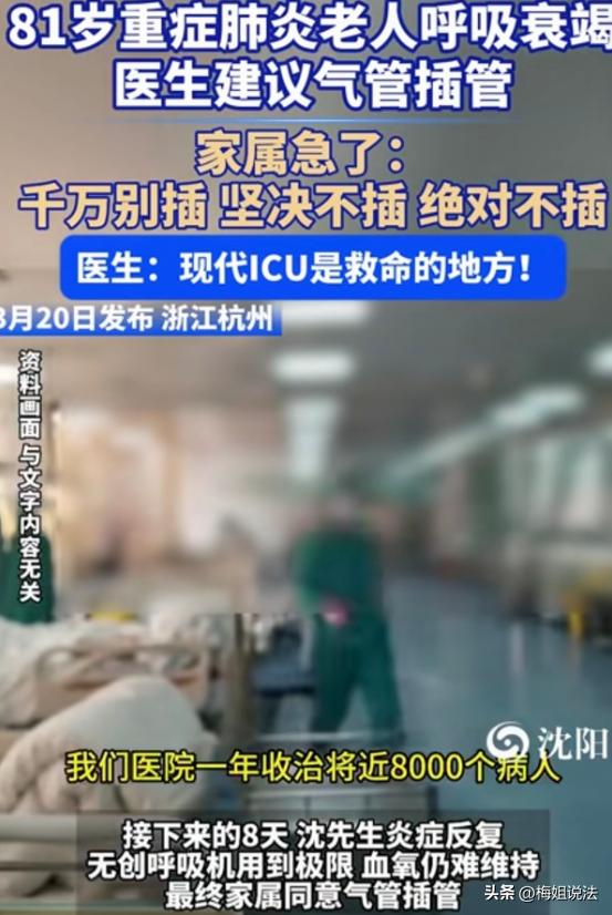浙江杭州,有位81岁高龄的老人,不幸患上重症肺炎后被紧急送进ICU,随后出现呼吸衰竭状况。医生提出气管插管的治疗建议,可老人女儿强烈反对,认为插管会让老人无法言语且走向绝路。医生告知医院救治情况,最终结果令人意外。 王大爷,已经8有1的人了,被一场重症肺炎,逼到生死边缘。 更让人揪心的是,治疗方案出来后,亲女儿却拼尽全力反对,不是不孝,她的理由听着就让人心酸,却也差点害了老父亲。 ICU的红灯亮着,里面是呼吸微弱的王大爷。 王大爷的好转,不是偶然,是医生的坚持,也是家属及时回头的幸运。 很多人不知道,重症肺炎引发的呼吸衰竭,每一分钟都在耗损生命。 王大爷被送进ICU时,已经陷入半昏迷状态,血氧数值像坐过山车,忽高忽低。 稍微懂点医的都清楚,这种时候,气管插管是救命的关键一步,可当医生把方案告知王大爷女儿时,她的反应,差点让所有努力白费。 在她的认知里,插管就是剥夺老人说话的权利,就是把老人推向绝路。 没人能怪她的偏执,毕竟,对于普通人来说,ICU本身就是一个让人恐惧的地方。 但很少有人注意,她的拒绝,不仅可能耽误治疗,还触碰了法律的红线。 医生没有放弃,耐着性子解释,把最真实的救治数据摆到她面前:这家医院,一年收治近8000名和王大爷情况类似的患者,死亡率还不到10%。ICU不是终点站,是救命的中转站,这句话,医生说了一遍又一遍。 可女儿依旧犹豫,医生见状,没有硬来,选择了折中的办法,先用无创呼吸机试试。 没人知道,这一试,就是8天,创呼吸机的效果,时好时坏,王大爷的病情反复无常,好几次都差点挺不过去。 无创呼吸机并非万能,对于严重呼吸衰竭的患者,它只能暂时缓解,更关键的是拖延的这8天。 直到第8天,王大爷的血氧突然骤降,呼吸几乎停止,医生再次发出病危通知。 这一刻,女儿才彻底慌了,她终于明白,自己的固执,差点酿成无法挽回的悲剧,最终签下同意书,嘴里反复念叨着,只要能救我爸,怎么都行。 医生争分夺秒,迅速开展气管插管操作,全程无菌操作,精准到位,不敢有丝毫差错。 插管成功后,护理团队更是打起十二分精神,定期清洁气道,监测生命体征,合理搭配营养。 仅仅过了几天,王大爷的病情就出现了明显好转,血氧逐渐稳定,意识也慢慢清醒,不再像之前那样呼吸微弱了。 后来有人问,为什么一开始不强制插管? 医生的回答,藏着专业和敬畏。 不是不能,是不愿,更是法律的规定:患者家属有知情同意权,除非紧急情况无法取得意见。 很多人都和王大爷女儿一样,把气管插管等同于“判了死刑”,却不知道,这是重症患者的救命稻草。 更有人忽略,家属的拒绝治疗,不仅可能害了患者,自身也可能承担法律责任。 医生的妥协,不是无能,是对生命的尊重,更是对法律的恪守。 如果医生强行插管,哪怕救了人,也可能涉嫌侵权,可如果放任不管,又违背了医者仁心。 这场博弈,没有赢家,却有万幸,王大爷活了下来,女儿及时醒悟,也没有留下终身遗憾。 根据《民法典》第1224条第一款规定,患者或者其近亲属不配合医疗机构进行符合诊疗规范的诊疗,医疗机构不承担赔偿责任,但如果家属的拒绝行为导致患者受到损害,家属需自行承担相应责任。 从法律角度看,女儿作为王大爷的直系亲属,在王大爷无法自主表达意愿的情况下,有义务为其做出合理的医疗决策。 但拒绝气管插管本身并不直接构成违法,关键在于是否尽到了合理的注意义务。 如果女儿在拒绝时,明知拒绝可能导致王大爷离世,且没有合理的医学依据支持其决定,那么她可能因未尽到注意义务而承担一定的法律责任。 不过,女儿主要是出于对插管的恐惧和对父亲病情的误解,且最终同意了插管。 根据《医疗纠纷预防和处理条例》第13条规定,紧急情况下不能取得患者或者其近亲属意见的,经医疗机构负责人或者授权的负责人批准,可以立即实施相应的医疗措施。 但这里的“不能取得意见”,不包括家属明确拒绝的情况。 也就是说,王大爷女儿明确拒绝插管,医生不能强制实施,只能耐心解释、寻求家属配合。 医生的强制救治权,有严格的适用条件,家属明确拒绝的,医生无权强制操作,否则可能构成侵权,违反《民法典》第1219条,关于知情同意权的规定。 , 家属的知情同意权,不是“拒绝治疗权”,而是“知晓并选择治疗方案的权利”,拒绝合理治疗,最终后果需自行承担,不能将责任推给医院和医生。 有人说女儿的固执可以理解,毕竟是担心父亲受苦,也有人说无知的固执,就是间接杀人。 您觉得在面对亲人生命垂危时,家属应该如何平衡自己的情感和医生的建议呢?