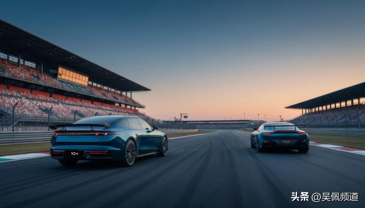 这是一起下赛道了?青蓝色配碳纤维大尾翼+黄色卡钳的领克10+和阿斯顿·马丁vantage“同场竞技”,20万的杭州湾马丁和200万的大不列颠马丁,什么情况下你会选前者?