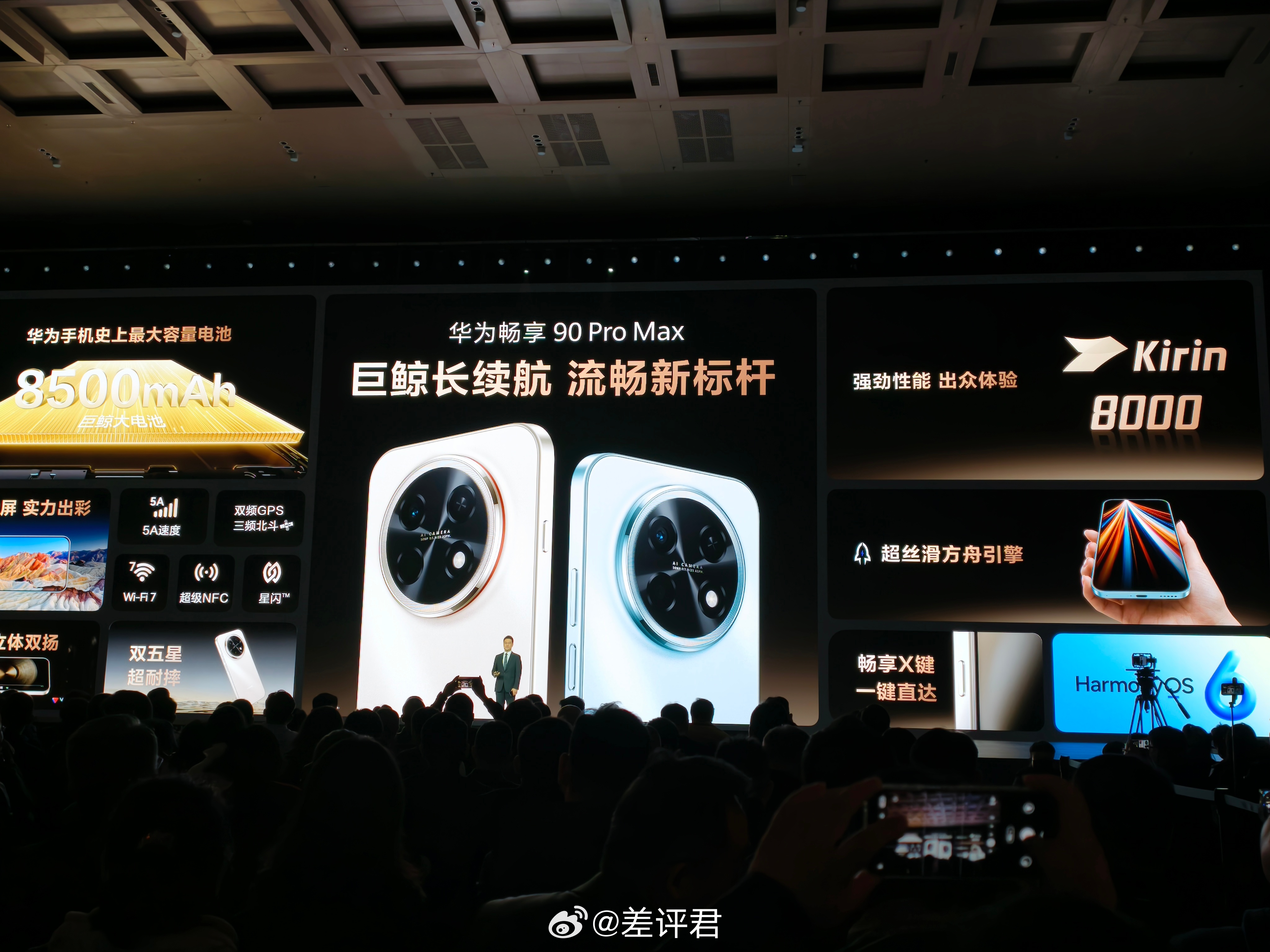 具体配置大家看图吧,都上了麒麟 8 系芯片+巨鲸电池,顶配超大杯是麒麟 8000+8500 mAh。