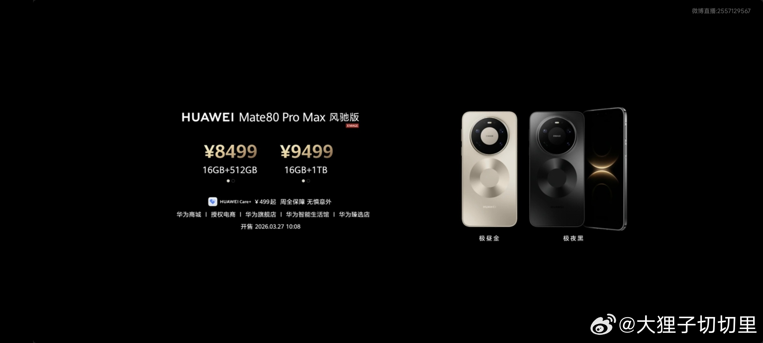 华为Mate 80 Pro Max 风驰版价格来了,16+512GB 8499元 ;16+1TB 9499元。3月27日正式开售 华为春季全场景新品发布会华为发布会