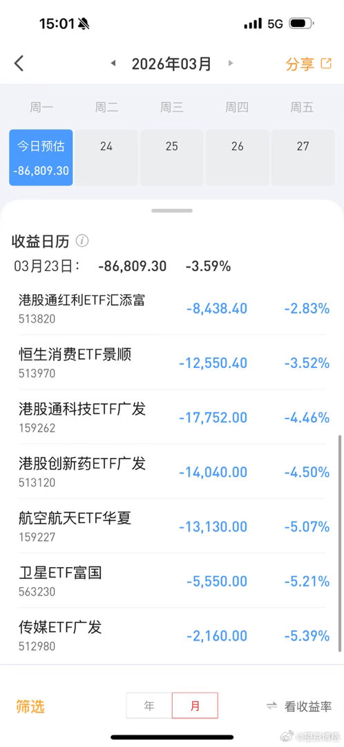 我靠!今天ETF帐户亏损8.7万这一天比上周五天亏的都多,作为一个投资者,这几年
