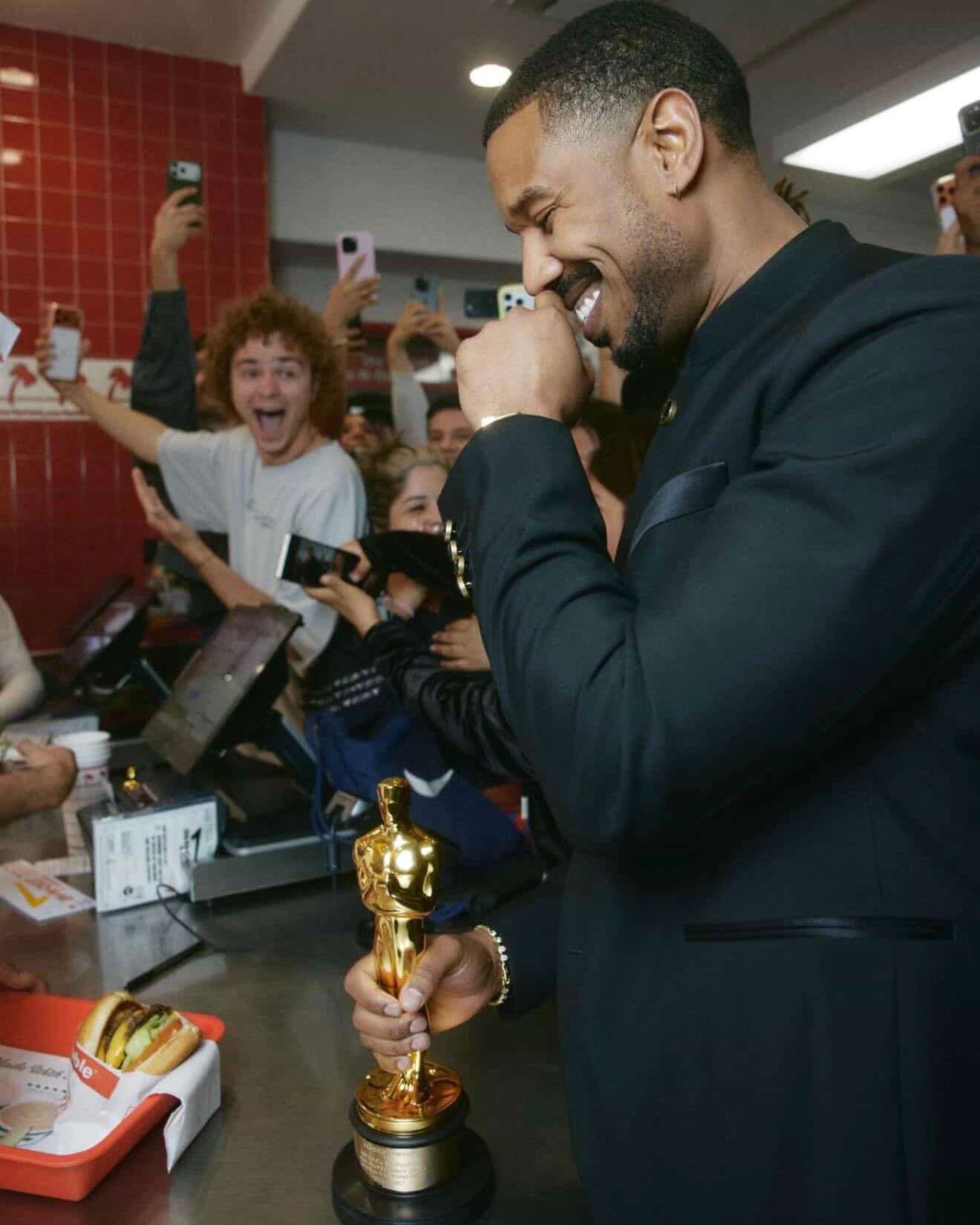迈克尔·B·乔丹在奥斯卡获奖后现身In-N-Out吃汉堡的未公开照片