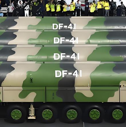 全球公认最强导弹!一枚定乾坤,谁也拦不住,这就是中国底气! 东风-41型洲际弹道导弹是中国战略导弹体系里的核心装备。它采用三级固体燃料推进,不需要长时间加注就能进入作战状态。弹体长度约16.5米,直径2.78米,发射重量超过60吨。最大射程达到14000公里,改进型可到15000公里。 从中国境内发射,覆盖范围几乎包括全球所有战略目标。飞行最高速度达到25马赫以上,每秒前进距离接近8公里,从点火到命中目标通常只需20多分钟。这种速度让它在短时间内就能抵达远距离地点,实战价值很高。 导弹制导系统结合惯性导航、星光辅助和卫星定位,圆概率误差控制在100米以内。单次发射最多携带10枚分导式重返大气层载具,每个载具都能自主变轨,分别攻击不同目标。弹头当量巨大,整体破坏力远超历史单一核武器水平。 高速再入时还能释放诱饵和干扰装置,现有的反导系统很难有效拦截。固体推进剂配方先进,发动机壳体用轻质材料,投掷重量得到提升。这些技术让它在全球同类导弹中综合性能领先,没有之一。 东风-41的机动发射方式是最大亮点。主要靠公路运输发射车,16轮重型底盘,重量超过60吨,能在普通公路、戈壁、雪地或者简易场地随时停下发射。 铁路平台和固定井发射作为补充,进一步提高生存能力。2012年7月24日它首次从山西基地发射,之后多次试射验证多弹头分离技术。 2019年国庆阅兵,东风-41发射车第一次公开亮相,18辆整齐通过天安门广场,它正式进入部队序列。火箭军官兵掌握全套操作流程,定期在不同地形开展演练。部队战备水平稳步提升。 西方军事专家评估后一致认为,东风-41综合指标在现役洲际导弹里处于领先位置。它的存在主要是战略威慑,目的是让外部势力不敢轻易发动攻击,维护国家和平稳定。