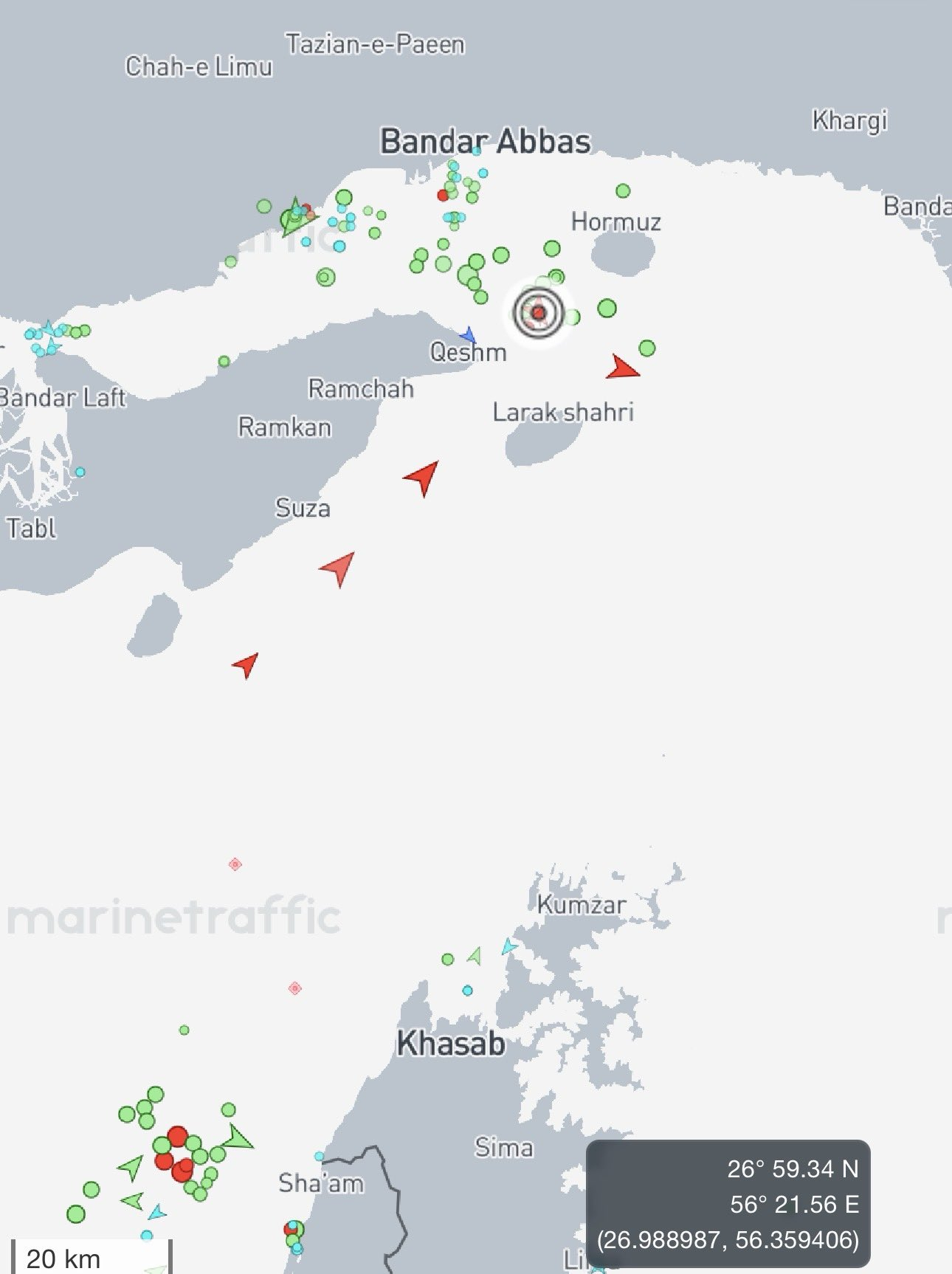 🔻Marinetraffic数据显示:一些船只正经过伊朗检查和控制的近岸新水道
