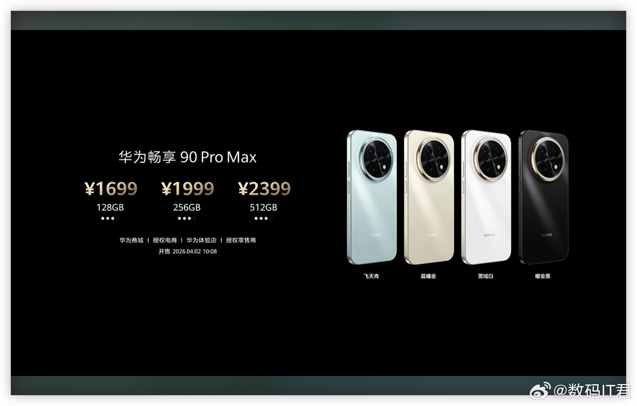 华为发布会华为畅享90系列价格公布:1299元-2399元。
