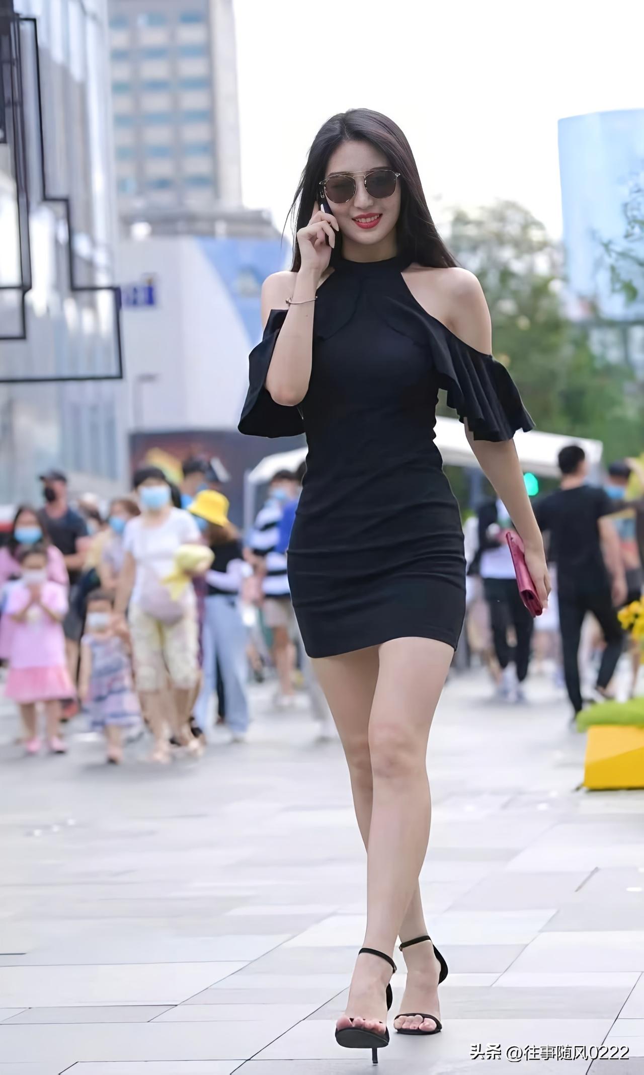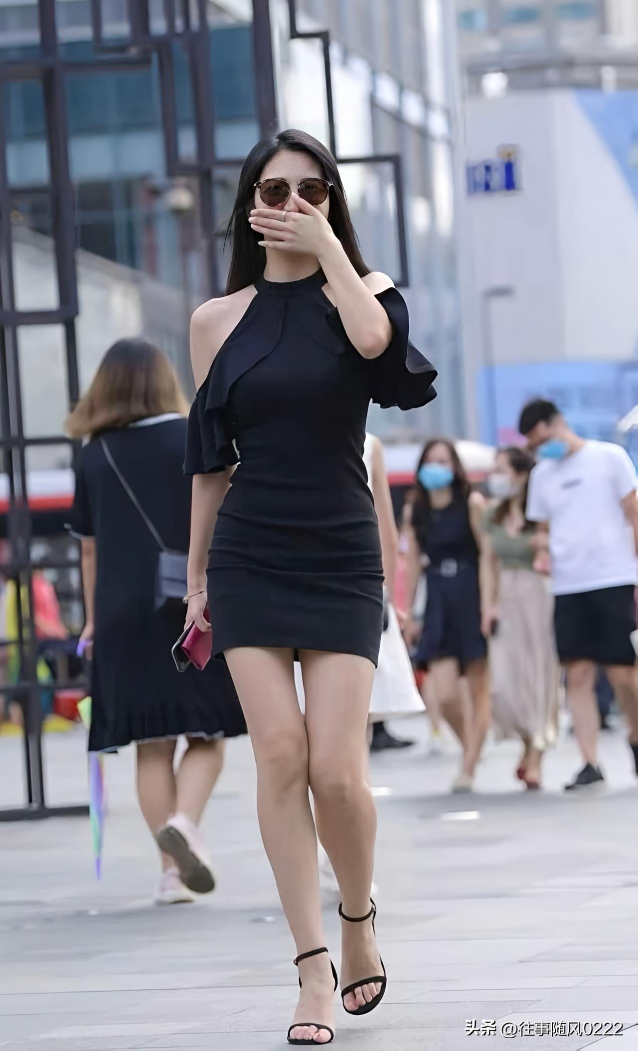 都市时尚女郎,黑裙配墨镜,自信步伐