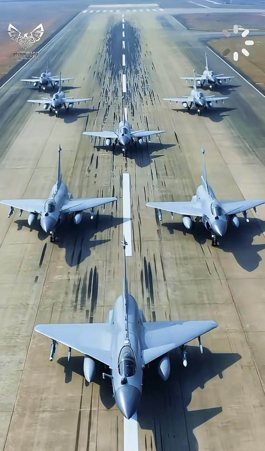 歼-10C战斗机在机场跑道上滑行起飞