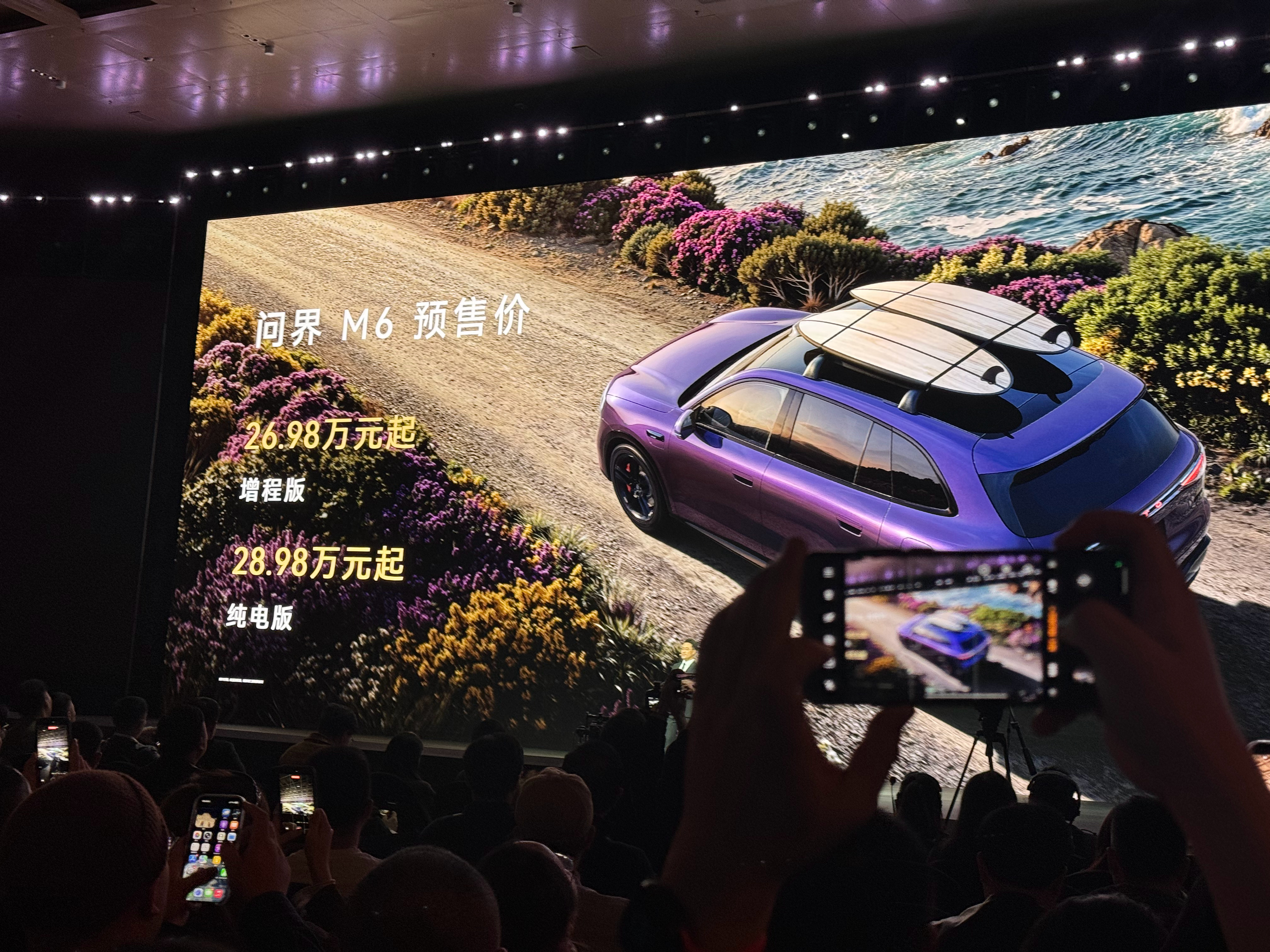 问界M6售价 来了来了,增程版预售价26.98万元,纯电版预售价28.98万元。现场介绍的几个亮点如下: