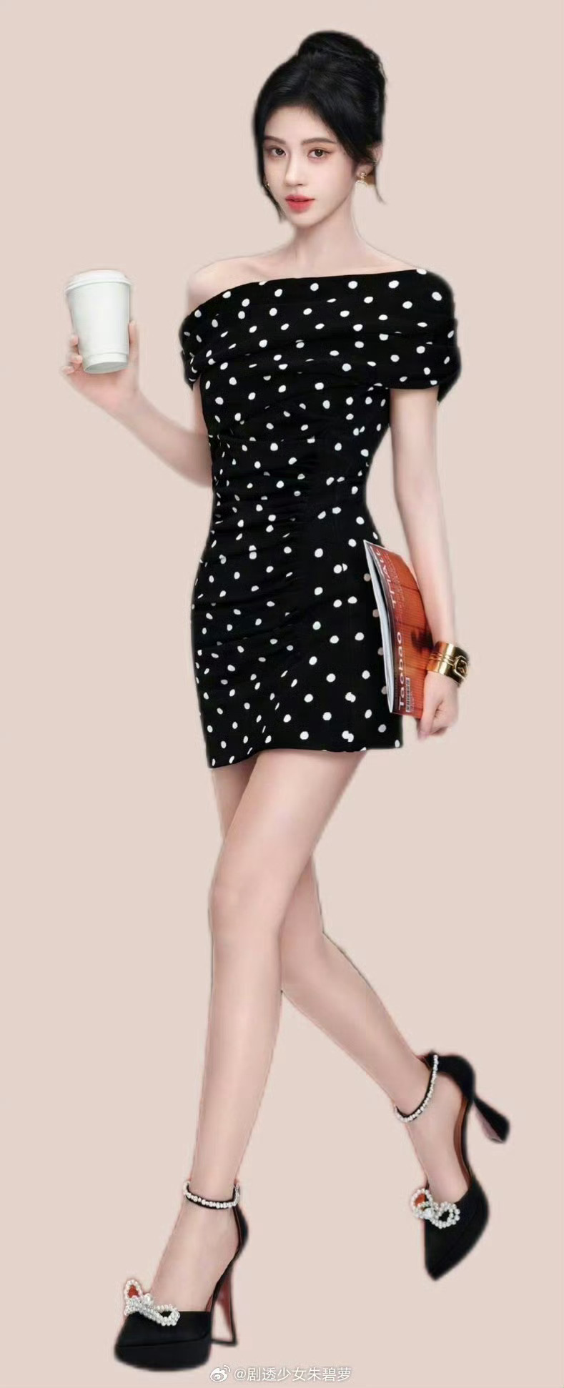 鞠婧祎春日穿搭风速速来一起get鞠婧祎春日穿搭风经典波点撞上灵动斜肩设计,甜妹氛