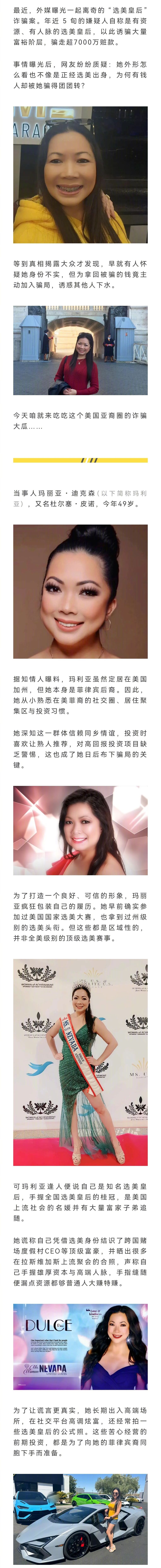 美国49岁女子自称“选美皇后”做背书,用假项目骗取老乡7千万,受害者们为拿回被骗