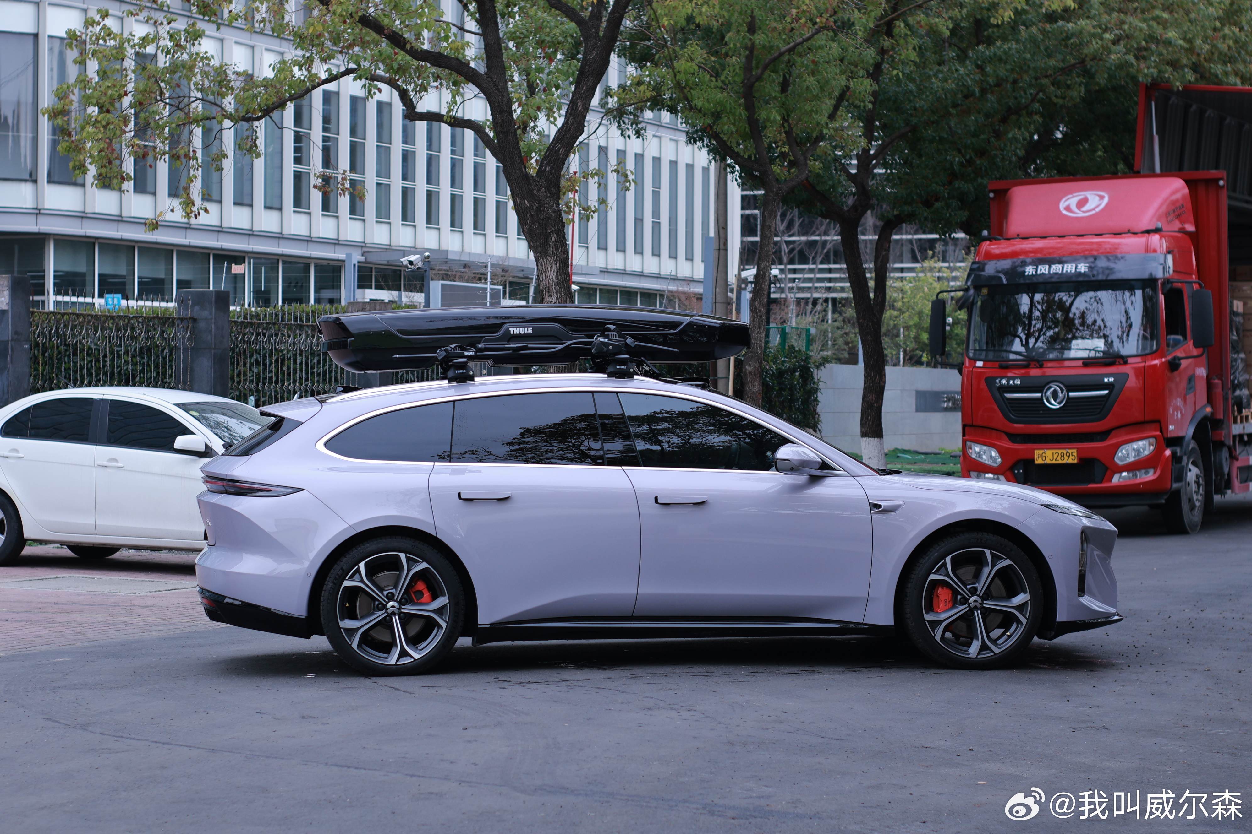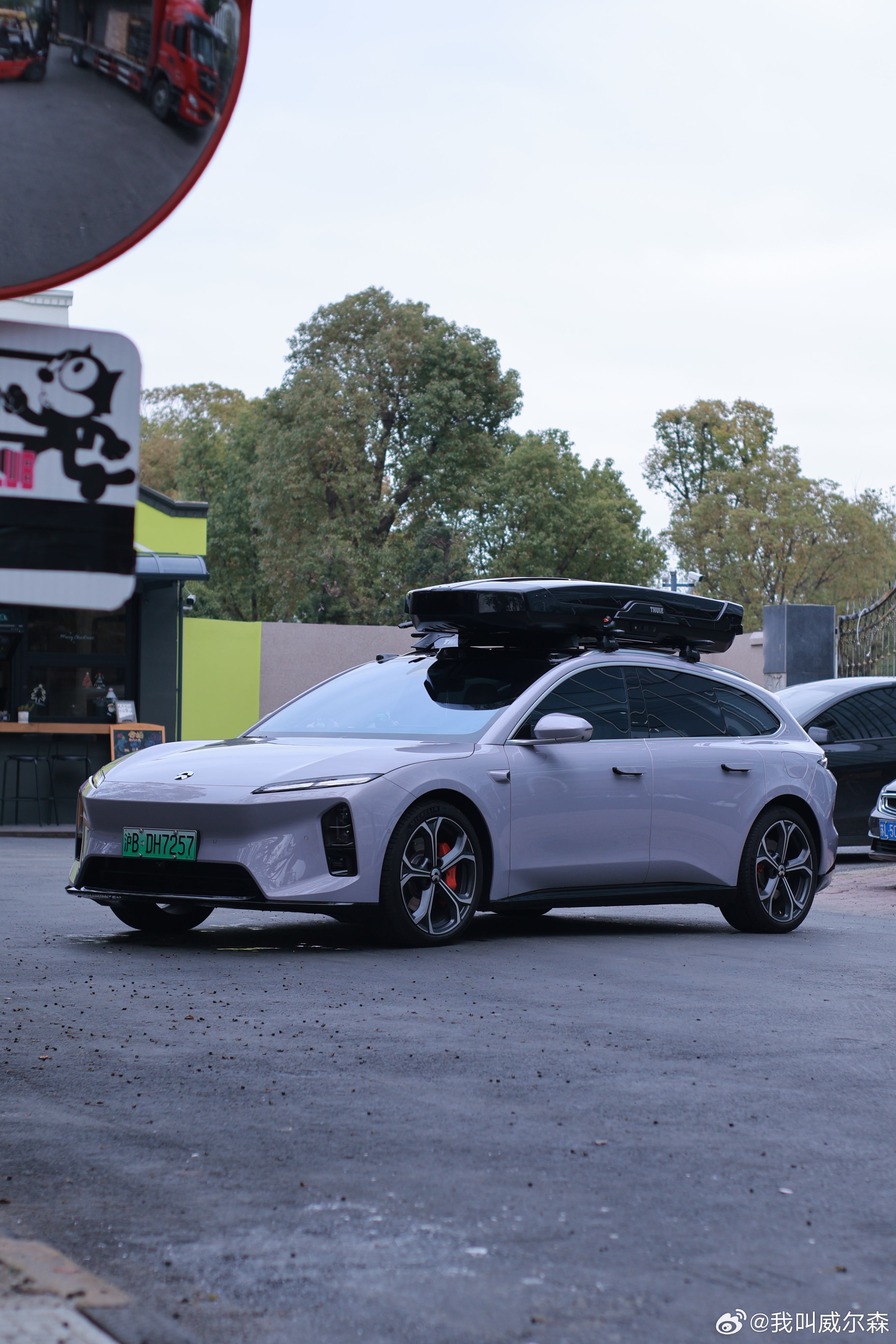 我给我的 ET5T 拍毕业照了旅行车该有的样子全有了,行李架、行李箱和自行车架旅