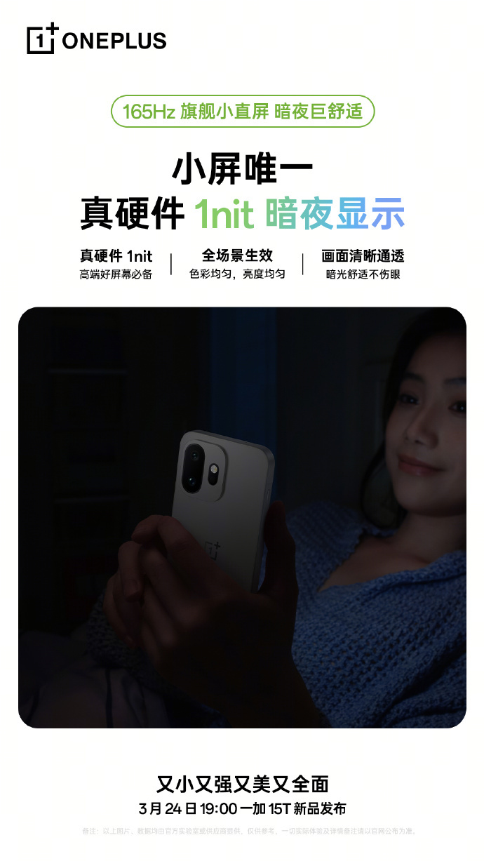 小屏其实一直不好做,很多硬件在尺寸受限的情况下很难做到位。但一加这次是下了决心的,直接搭了中国自研显示科学产线,联合做新一代发光材料,把1nit暗夜显示、硬件级低蓝光、超高频调光这些全都做到硬件层面,再加上小屏唯一的小金标护眼验证,这一块是真的拉满了