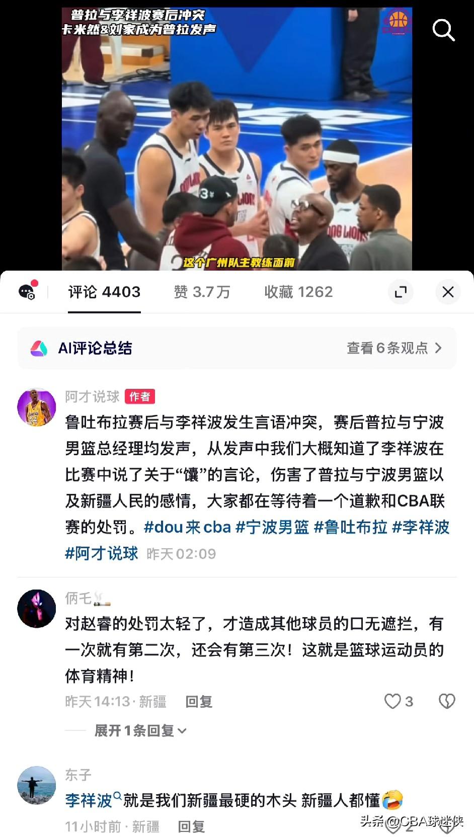 为何李祥波比赵睿多罚1场?CBA官方给出了答案 李祥波停赛4场,罚款10万。鲁吐布拉停赛1场,罚款5万。 罚单一出,所有人都在问同一个问题:为什么赵睿3场,李祥波4场? CBA官方公告里,藏着答案: “鉴于此次事件未能汲取联赛2月1日类似事件的教训,对联赛纪律处罚规定的相关要求置若罔闻,并且导致联赛在短期内再度出现类似问题,存在加重处理情形。” 翻译一下: 赵睿那事刚罚完,你不长记性 明文规定摆在那,你当看不见 短短一个月,又来一遍 所以,加罚!