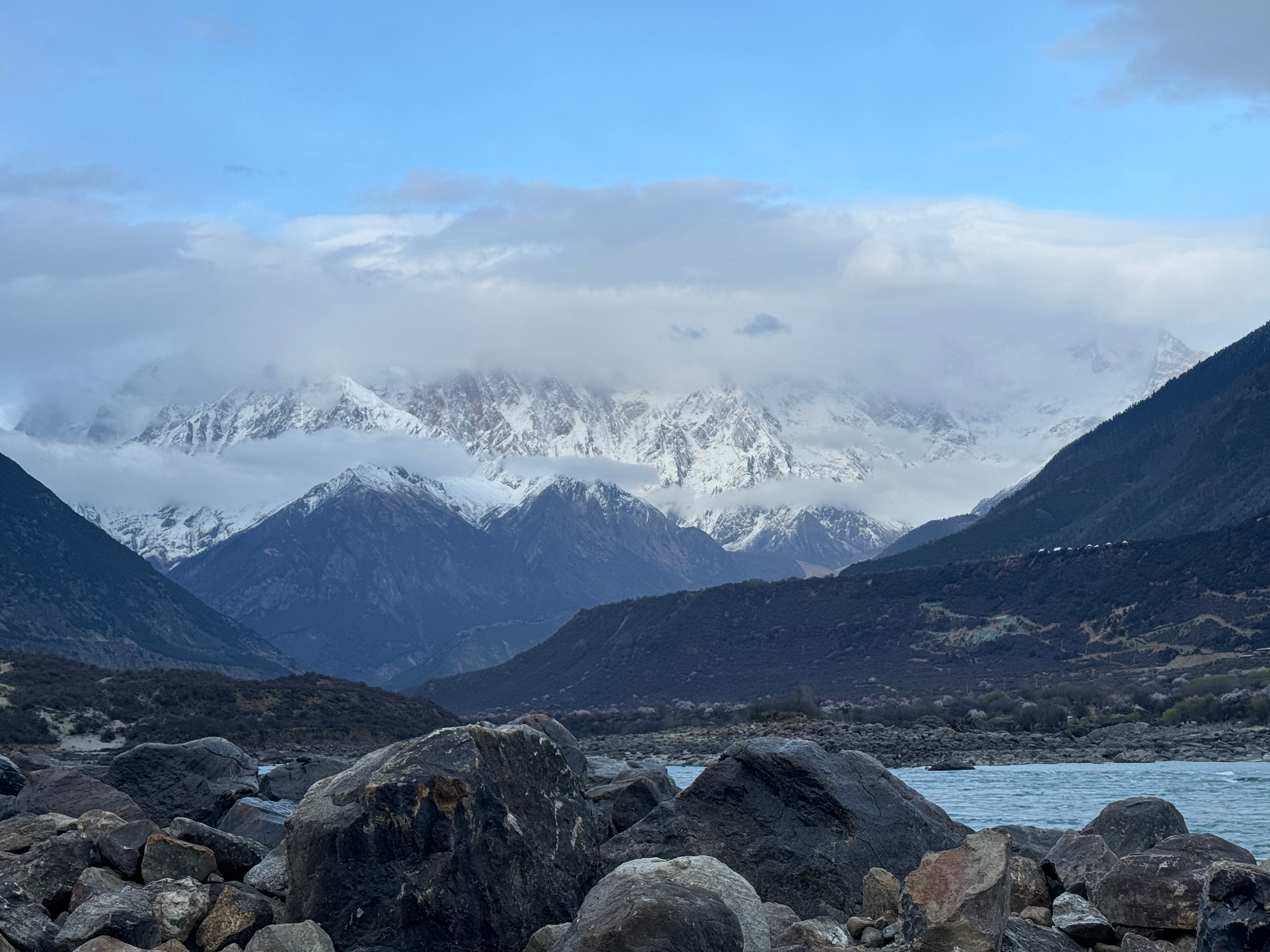桃花满盈的雅鲁藏布江畔,圣山南迦巴瓦终究还是没能露出它的真容,等一场日照金山,果然还是需要运气