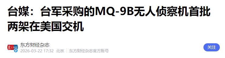 台当局正式宣布 3月22日,台当局正式宣布:向美国采购的MQ-9B高空无人侦察机,首批两架已于美国西部时间上个星期二(17日)举行交机典礼。 消息一出来,台湾岛内的绿营媒体就像打了鸡血一样,在各个平台不停吹嘘,说这款由美国通用原子公司造的无人机是全球最顶尖的察打一体装备,能在一万多米高空连续飞几十个小时,台海周边大片海域都能看得一清二楚,好像台当局买了这几架飞机,就拿到了能安身立命的护身符一样。 可这些天天吹得天花乱坠的人,从来不敢跟台湾老百姓说实话,更不敢把这笔买卖的底细掰开揉碎讲清楚,今天就把真实情况明明白白说出来。 首先要明确一个核心事实,美国卖给台湾的 MQ-9B 无人机,根本不是绿营口中全能的察打一体装备,而是被阉割过的纯侦察版本,没有搭载任何攻击武器,既不能发射导弹,也不能投掷炸弹,只能用来拍照、探测、跟踪目标,完全没有打击能力。 绿营刻意模糊 “侦察型” 和 “察打一体” 的区别,就是为了误导民众,让大家误以为这款无人机能攻能守,实际它就是一架只能看、不能打的空中侦察平台。 这款无人机的飞行参数确实有亮点,能飞到 12000 米以上的高空,连续飞行时长能达到三四十小时,航程也超过 1 万公里,这些数据都是真实的。但放到台海的实际环境中,这些优势根本发挥不出来。 台海空域和海域都处在解放军的严密监控之下,这款无人机没有隐身设计,机身庞大、飞行速度慢,巡航速度只有 300 多公里每小时,目标特征非常明显,一升空就会被解放军的雷达精准捕捉。 更关键的是,这款无人机没有任何自卫能力,既没有隐身涂层躲避探测,也没有干扰设备对抗攻击,面对解放军完整的防空体系,它就是毫无还手之力的活靶子。 平时它只能在台海东侧远离大陆的空域勉强飞行,一旦局势紧张,根本不敢靠近大陆沿海,连基本的侦察任务都无法完成,绿营吹的 “掌控台海周边态势”,完全是不切实际的空话。 这笔买卖的价格更是坑惨了台湾老百姓。台当局一共采购 4 架 MQ-9B 无人机,加上地面控制站、配套设备、后期维护等费用,总花费超过 6 亿美元,换算成新台币将近 170 亿,单机价格突破 1 亿美元,比美国军方自己采购的价格高出数倍,甚至比 F-35 隐身战机的采购成本还要高。 美国军火商漫天要价,台当局心甘情愿当冤大头,花的全是台湾民众的纳税钱,本质上就是给美国交 “保护费”,用民众的血汗钱满足自己的政治图谋。 从数量上看,这款无人机也起不到任何实际作用。台当局原本计划 2025 年完成交机,结果一再拖延,现在首批只交付 2 架,剩下 2 架要等到 2027 年才能全部交完,总共只有 4 架。 台海海域广阔、空域复杂,4 架无人机就算全天不间断飞行,也无法实现全时段、全覆盖的监控,想要靠这点装备改变台海局势,完全是天方夜谭。 绿营媒体和台当局刻意隐瞒这些真相,只挑好听的说,就是为了欺骗台湾民众,营造 “靠美国武器就能自保” 的假象。 他们从来不敢告诉民众,美国卖武器给台湾,从来不是为了保护台湾,而是把台湾当成敛财的工具和地缘博弈的棋子。 美国既通过军售赚走大笔资金,又能借助无人机的侦察数据掌握台海信息,把台湾牢牢绑在自己的战车上,完全不顾台湾民众的安危。 事实上,两岸的军事实力差距十分悬殊,台当局靠采购几件美国武器搞 “以武谋独”,根本不可能成功。 MQ-9B 无人机不仅不是台湾的 “护身符”,反而会加剧台海紧张局势,让台湾面临更大的安全风险。台当局把民众的血汗钱浪费在无用的武器上,只会让台湾的经济和安全状况越来越糟。 说到底,绿营对 MQ-9B 无人机的大肆吹嘘,全是政治操弄和虚假宣传。台湾的安全从来不是靠买美国武器能换来的,只有坚持一个中国原则,拒绝 “台独” 分裂行径,推动两岸关系和平发展,才是保障台湾民众利益、维护台海和平稳定的唯一正确道路。 台当局和绿营势力不要再用谎言欺骗民众,认清两岸统一的大势,停止勾连外部势力,才是对台湾民众真正负责。
