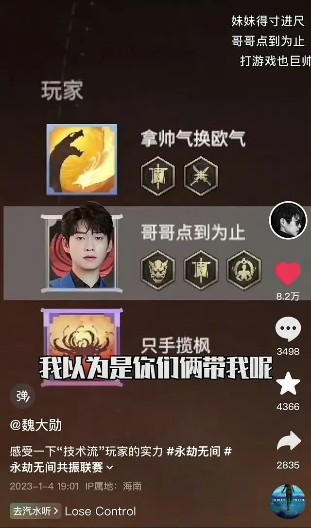 大侦探 恭喜魏大勋哥哥点到为止id全网热度破2亿,哥哥点到为止起源于魏大勋的游戏id,一个游戏id就出圈,此男的苏点浑然天成