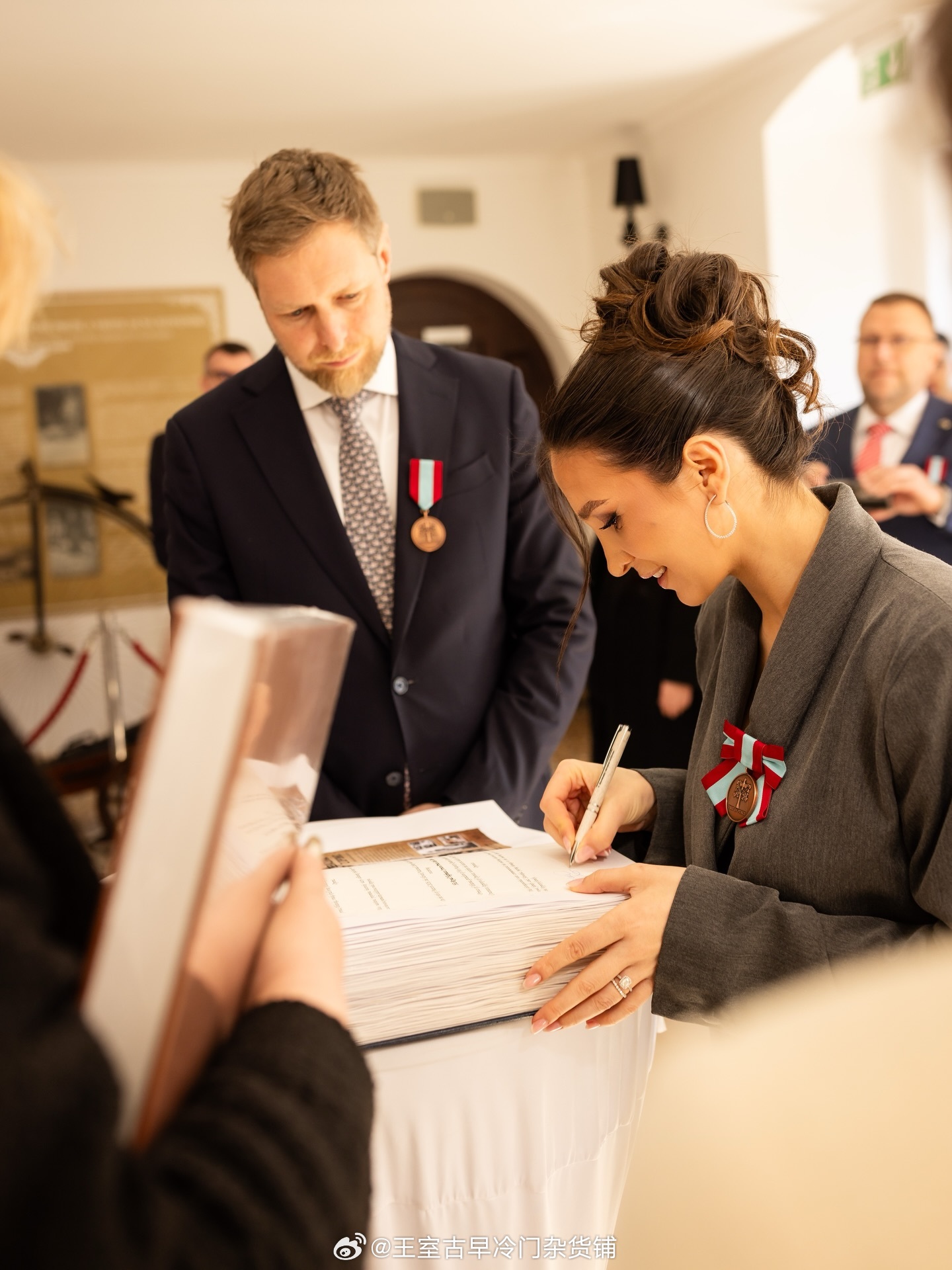 王室王室阿尔巴尼亚王室 莱卡王子夫妇参观图书馆,这个小三年轻,莱卡王子是一定要追耀祖的,他家也不承认女性的继承权,不知道小三什么时候备孕