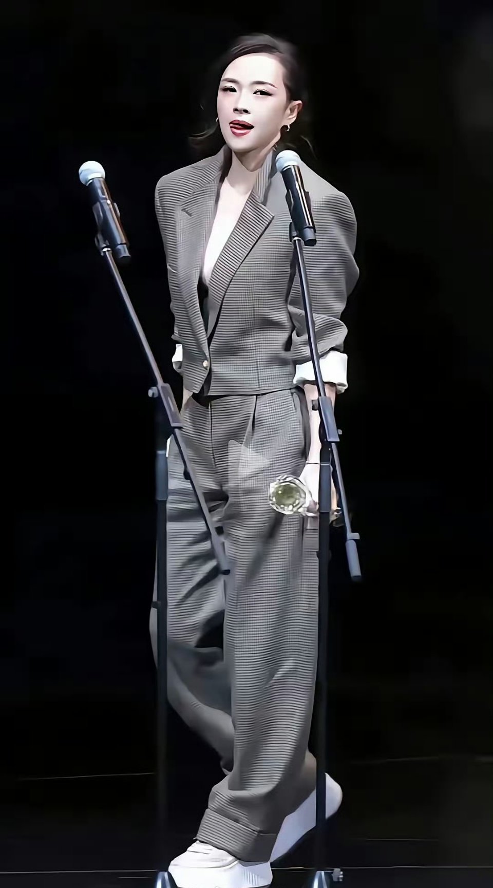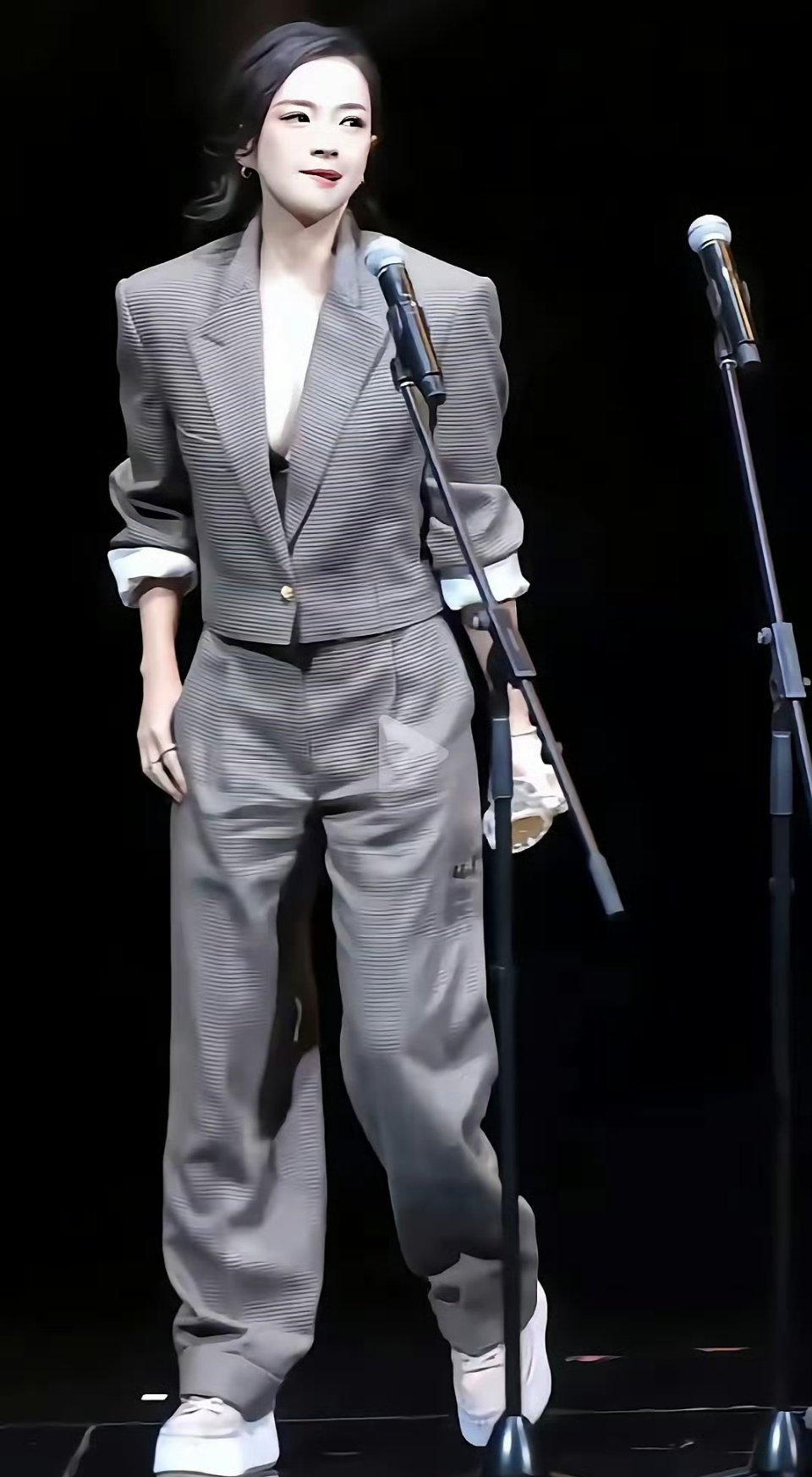 47岁的章子怡在台上一身休闲套装,显得又潮又嫩,这造型绝了