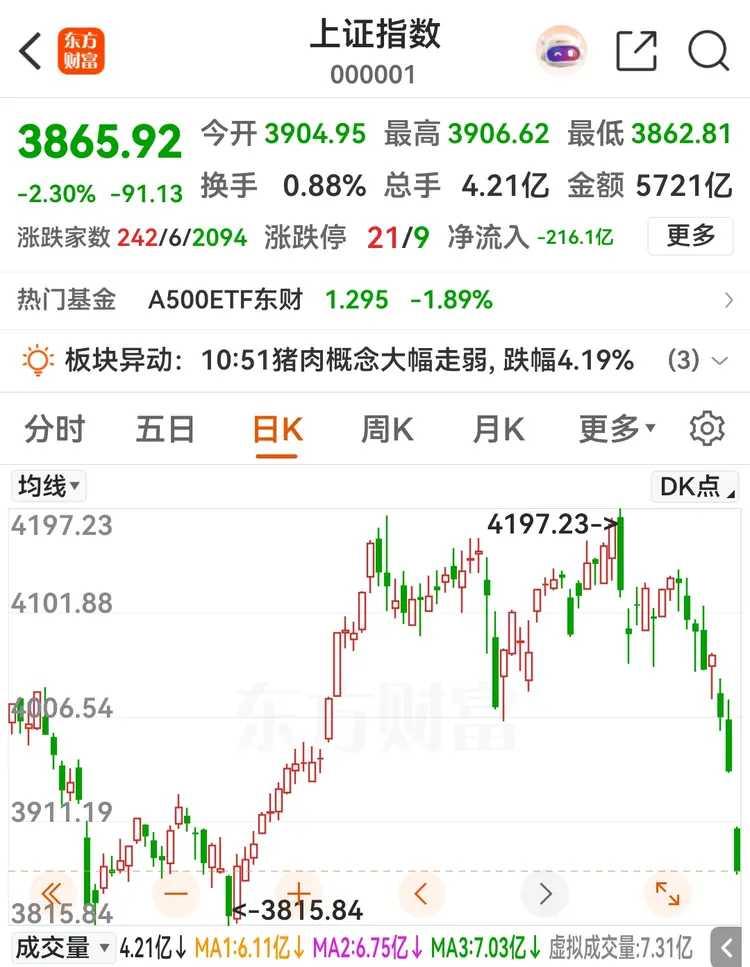 股友说,今天A股大跌,盘中根本跑不掉。 还有股友说,根据量化下跌信号,今天的下跌,与量化交易的特征几乎相同。 而且,融资盘的斩杀线刚刚开始。 无怪乎游资大佬都举手投降。 估计明天周二最差的走势就是跌到3815附近,构成三重底,然后强烈反弹。 最迟周三周四重拾升势。