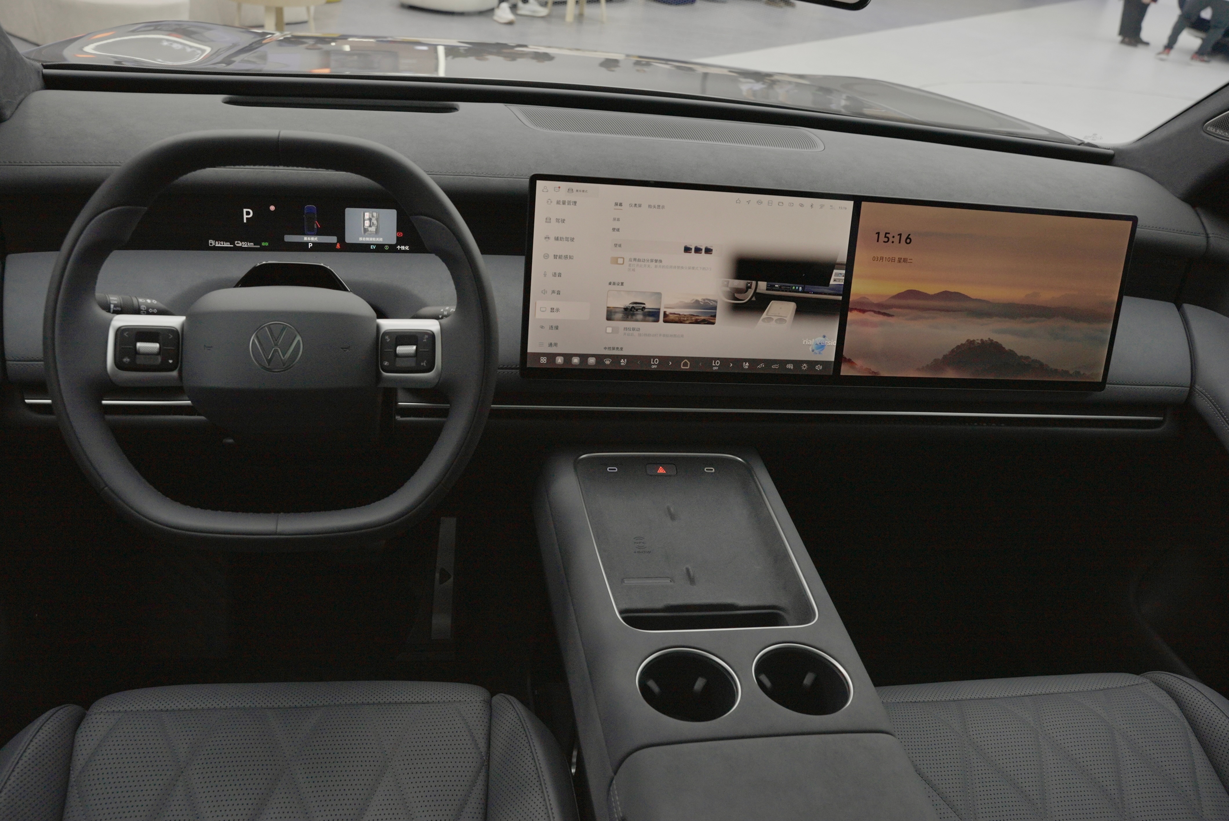 另一台与众 08就明显更“放开了”。设计更激进一点,前脸灯组可以做动态灯语,还能自定义,挺有意思。硬件也很新势力:800V平台、730km续航、1500TOPS算力、VLA端到端智驾基本都给满。但有意思的是,它在底盘和操控上还是很“大众”,像空气悬架、DCC、Brembo卡钳这些都在,很扎实。