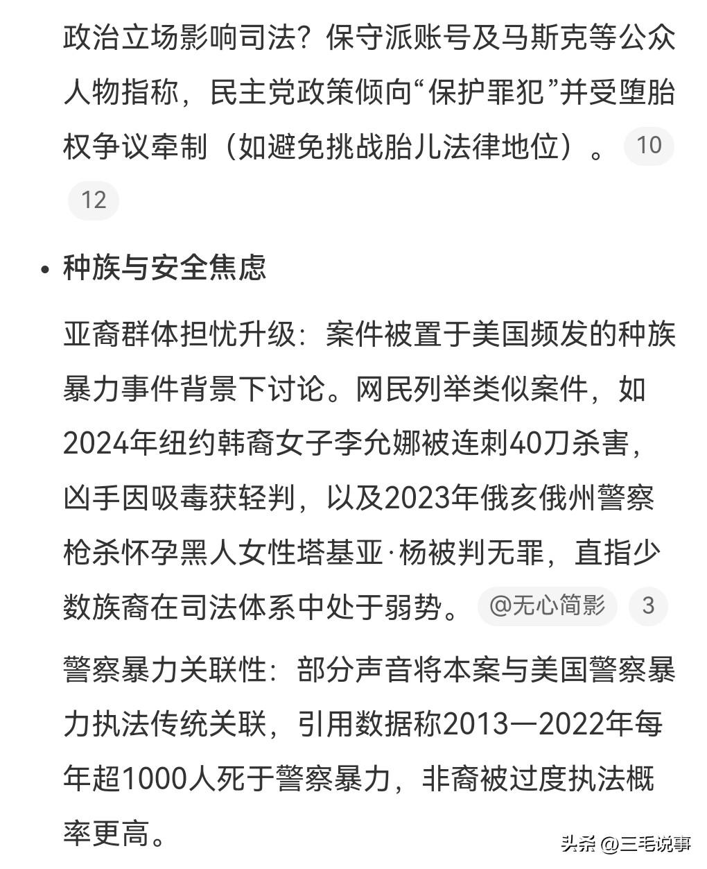 美国又发生了一起冤案,美国男子枪杀韩裔孕妇被判无罪。一位美国男子枪杀韩裔孕妇,竟然被判无罪,这找谁说理去啊?这可是两条人命。当时这名孕妇的老公也被开枪打伤了,当时这孕妇都怀胎8个月了,医生紧急为孕妇实施剖腹产,生完孩子后不久身亡,孩子也不幸夭折了。值得一提的是,美国男子被抓时高举双手称是我干的。 很显然,这名男子的意识非常清醒,因为这的确是他干的。不过法院最终以精神疾病为由,认为男子当时精神错乱才犯下罪行,竟然被判了个无罪。这真的是太离谱了,这名男子明明是清醒的,没想到被认为成了精神病。法院还同意了这个观点,这真的是太可笑了。又一起正义缺席的事件,美国的法律不过如此,太可怕了。美国的司法就是个笑话。