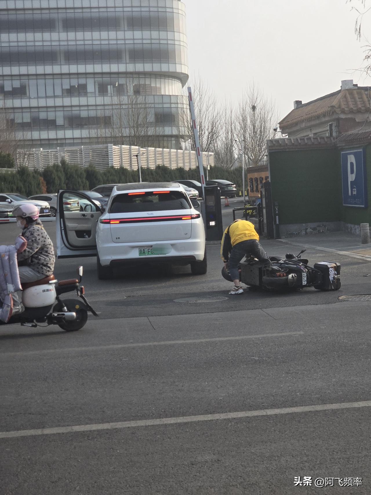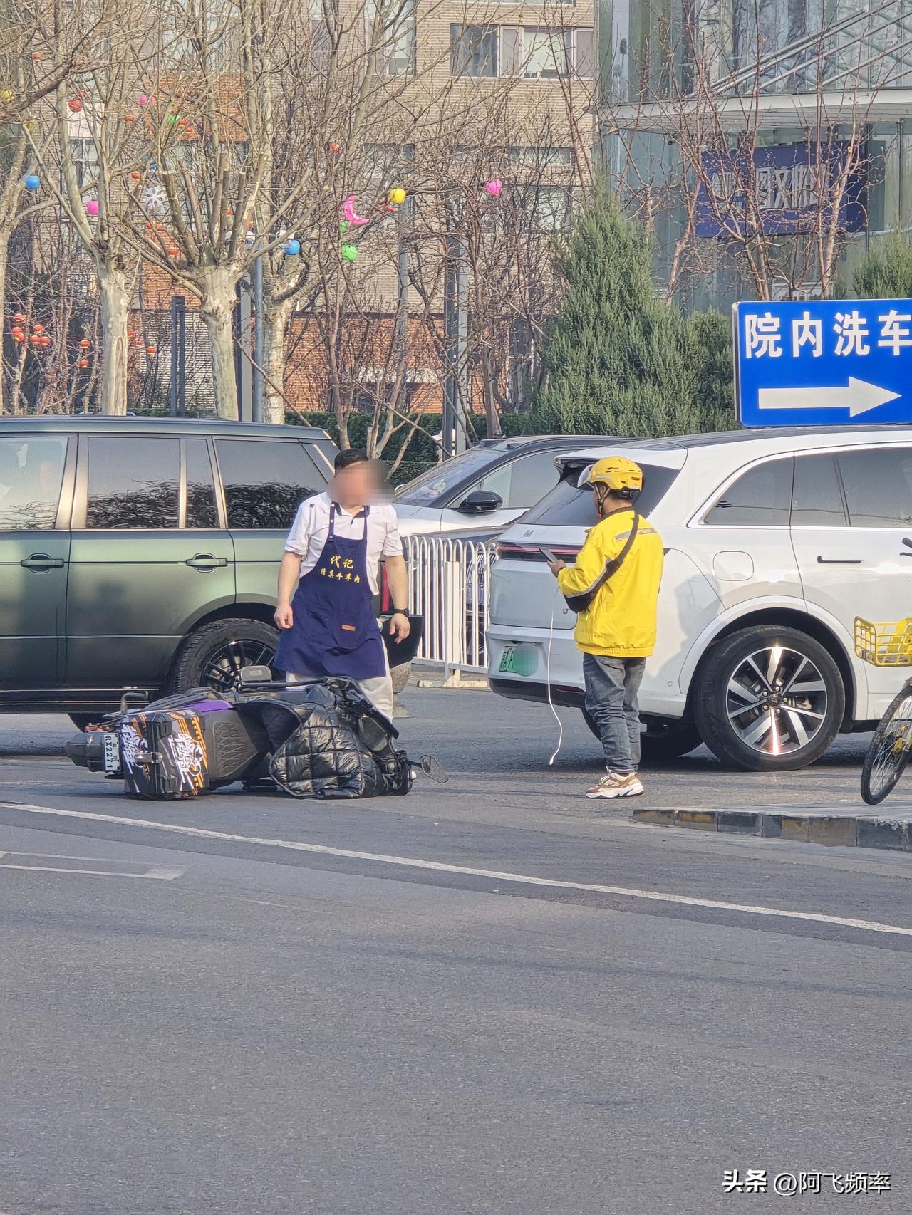近在眼前的交通事故 外卖小哥被撞了,白色小客车的车主下来直接去看车了,然后说“你
