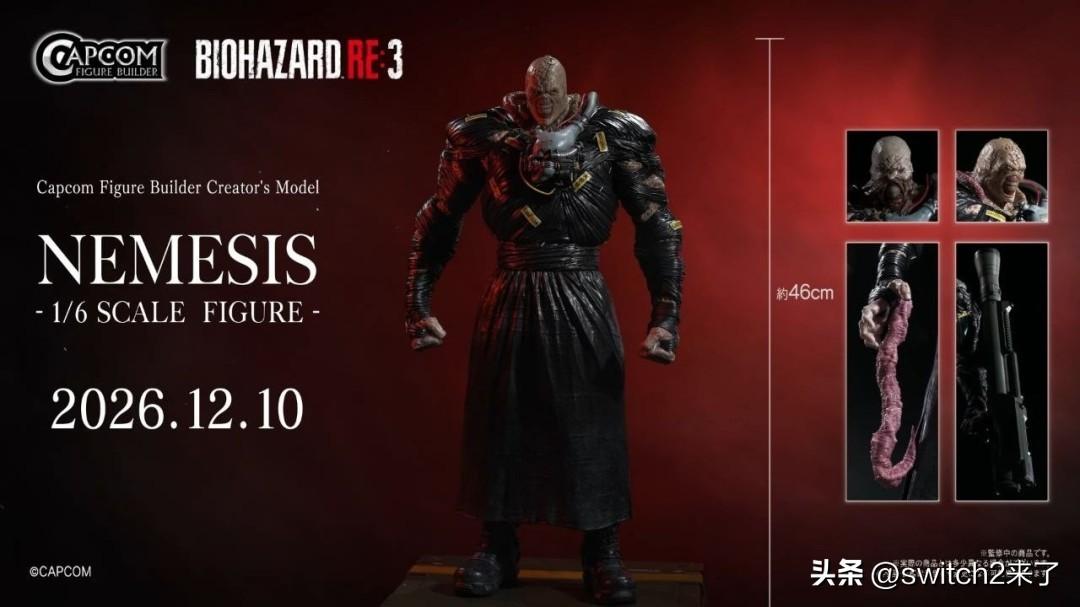 卡普空近日宣布,为庆祝《生化危机》系列诞生30周年,将推出《生化危机3》重制版经典反派追踪者(Nemesis)的高端雕像。该手办隶属于卡普空自有品牌Capcom Figure Builder,将于12月10日正式发售。 这款1/6比例的追踪者雕像高约40厘米,采用PVC与ABS材质制作。其最大特色在于配备可替换头部,玩家可根据喜好选择重制版的现代造型或1999年原版的经典设计。配件方面包含标志性触手、火箭发射器以及印有保护伞公司Logo的专属底座。该产品目前已开启预售,e-Capcom商店售价为49,478日元(约合330美元)。