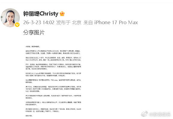 钟丽缇发文回应女儿争议钟丽缇就女儿考拉争议道歉 近日,钟丽缇小女儿考拉Cayla在社交平台发布照片,疑似拍到姐姐Jaden坐在马桶上,引发系列热议。刚刚,发文回应,称照片中的人不是姐姐,而是同学:“孩子还小,没有意识到边界问题”,“我们已经第一时间删除照片,并和孩子强调隐私和尊重的重要性。”钟丽缇向同学和家人道歉,并希望网友不要再传播相关照片。钟丽缇也强调“我们一家人深深爱着这片土地。”
