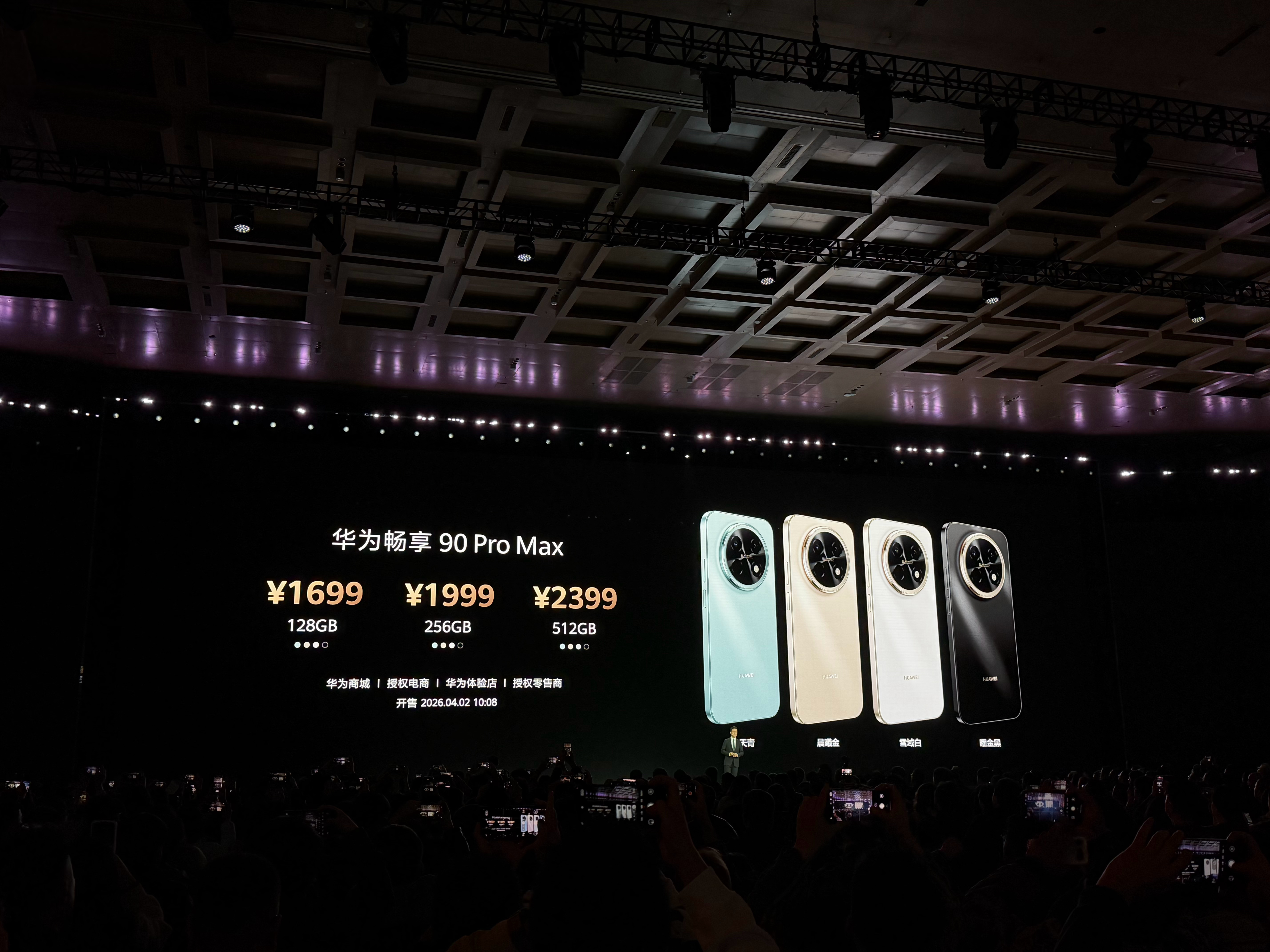 第二款新品:华为畅销90系列华为畅享90ProMax,拥有4款配色,搭载85