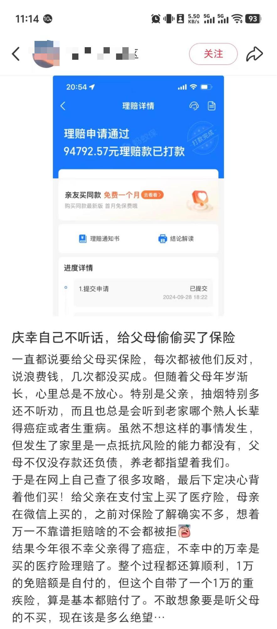 陈琳说正因为有了保险托底,可以选择更好治疗方案,老人也卸下了心理负担,治疗不错,生存期远超预期。可以说,保险不仅在经济上兜底,还能在心理上解压。
