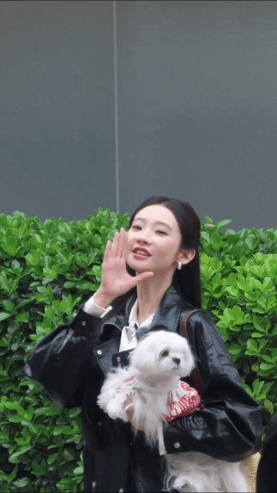 张艺凡上班带狗饭撒张艺凡今日上班路透来了,视频里有两个萌物,超可爱!句句有回应的