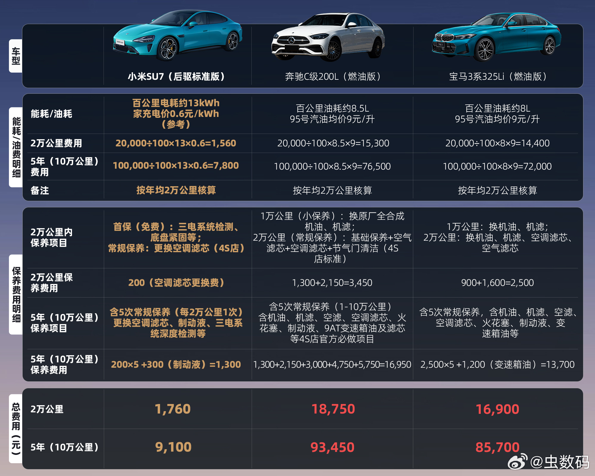 我想说,与其时时刻刻在关心油价,不如直接“油改电”,选择纯电汽车它不香吗?举个例子,你花三四十万钱买 BBA 的 35C,每年花在油上就要 2 万了吧?还不如买售价更便宜,科技感、颜值更高,配置更强的小米新SU7,买车省钱了,每年花费也省了十多倍,2000 块电费你都用不掉,关键还不用再担心油价的涨跌,这不省心吗?