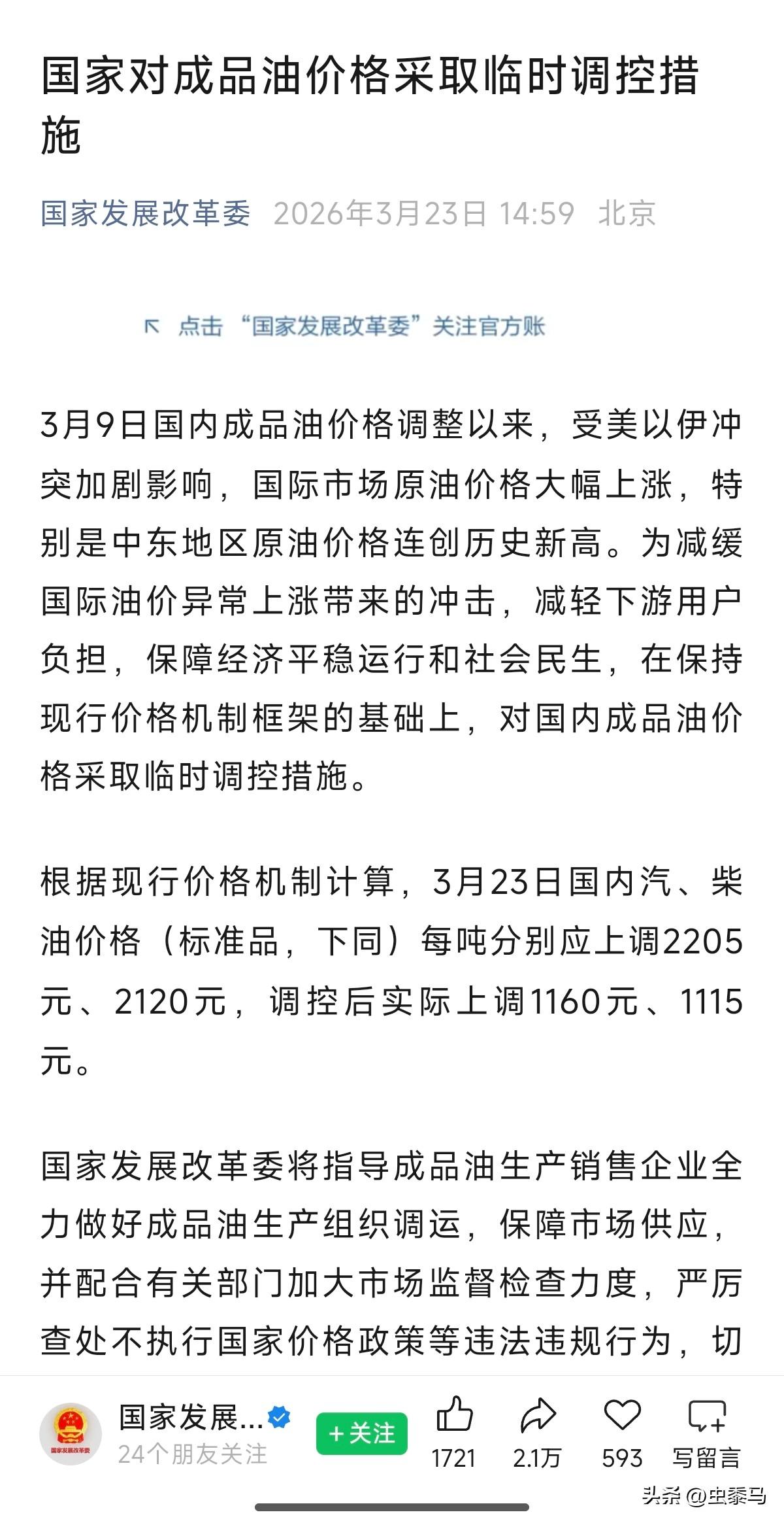 该来的还是来的,成品油调价窗口再次开启。这次够夸张的,柴油和汽油每吨本来分别应上调2205元、2120元,国家出手调控后实际上调1160元、1115元。本来每升汽油差不多要涨 1.72 元,现在每升少涨了 0.85 元,对油车党,来说是不幸中的万幸。 我想说,与其时时刻刻在关心油价,不如直接“油改电”,选择纯电汽车它不香吗?举个例子,你花三四十万钱买 BBA 的 35C,每年花在油上就要 2 万了吧?还不如买售价更便宜,科技感、颜值更高,配置更强的小米新SU7,买车省钱了,每年花费也省了十多倍,2000 块电费你都用不掉,关键还不用再担心油价的涨跌,这不省心吗? 而且新 SU7 是纯电轿车的标杆,续航、驾控、智能生态都是佼佼者,保值率也挺高。再说了,花这么多钱,买个 35C 现在好像也没啥面子的优势了,要是开个新 SU7 情绪价值明显更高。你说是不是?