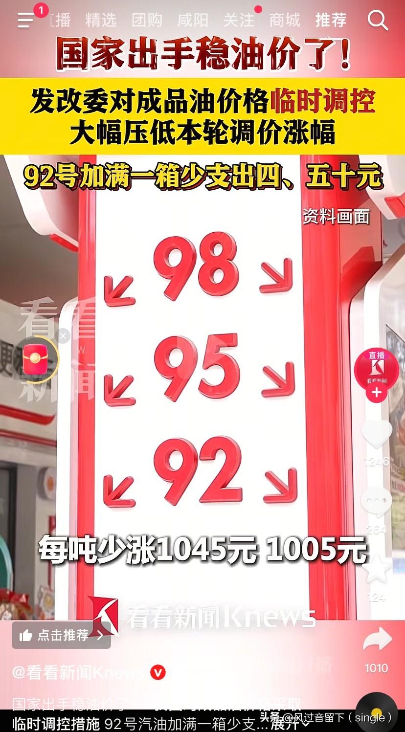 就这涨幅,压力还是大啊! 3月23日24:00将进行新一轮油价调整,92号本来好像一升说要涨1.8元左右。 但是现在国家出手了,发改委对成品油价格临时调控,大幅压低本轮调价涨幅。 全国平均每升少涨0.85元,92号加满一箱少花40-50元。 但是这涨幅也是够厉害的了,以前都是几分几毛的涨,涨1毛都算大幅了!现在涨那么多,虽然国家出手了,但是这涨幅对有些人来说压力还是有点大!
